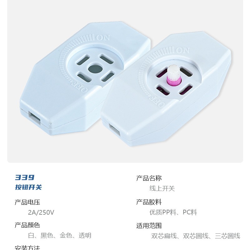 型号 ZH-339国标黑,ZH-339国标白,ZH-339美规黑,ZH-339美规白