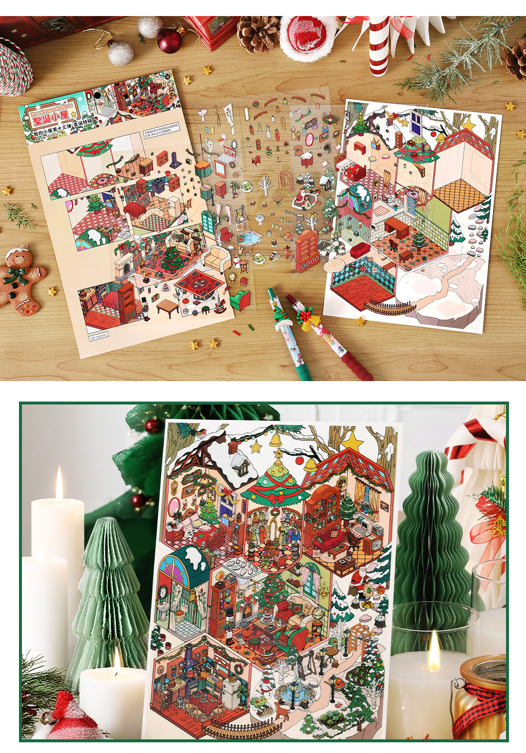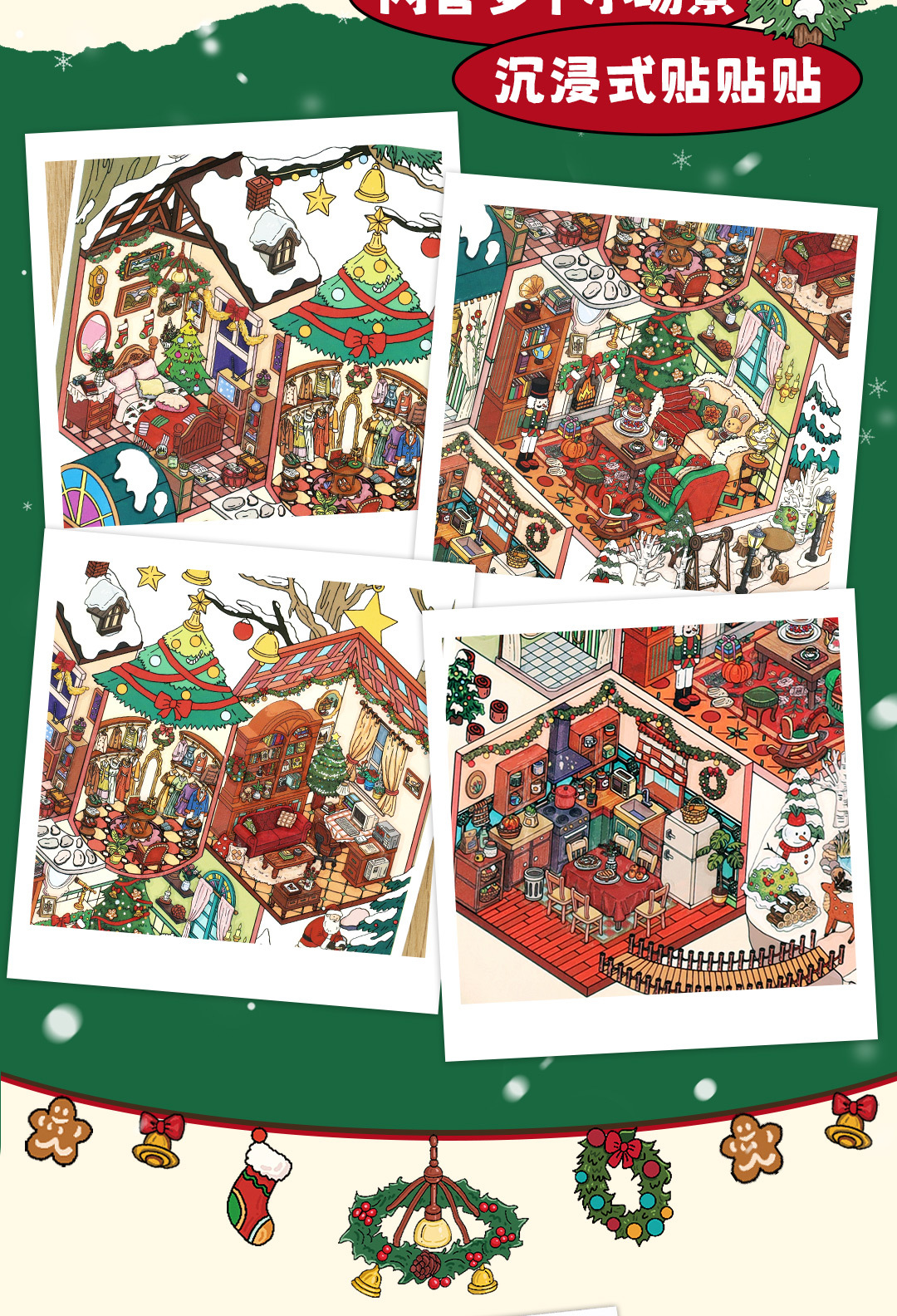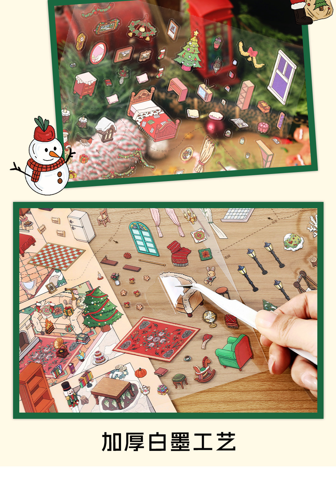 俊贝13.0圣诞系列造景贴纸大版3D立体奶香镇微缩场景diy贴画玩具