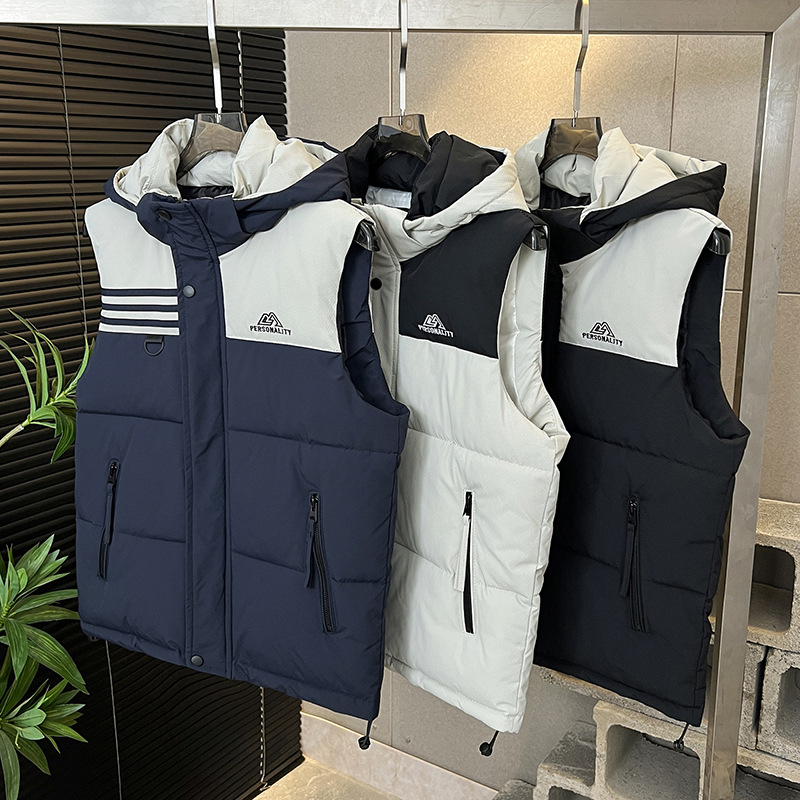 秋冬新款男士休闲马甲保暖连帽外套时尚连帽无袖坎肩
