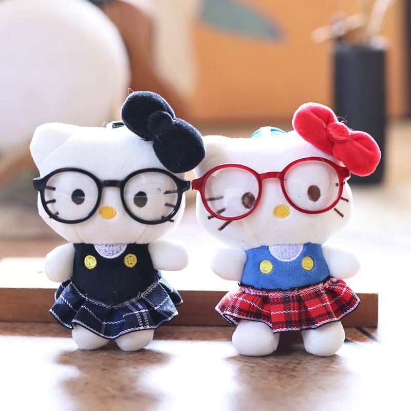 网红可爱萌眼镜kt挂件毛绒玩具公仔小猫咪包包挂饰钥匙扣娃娃玩偶