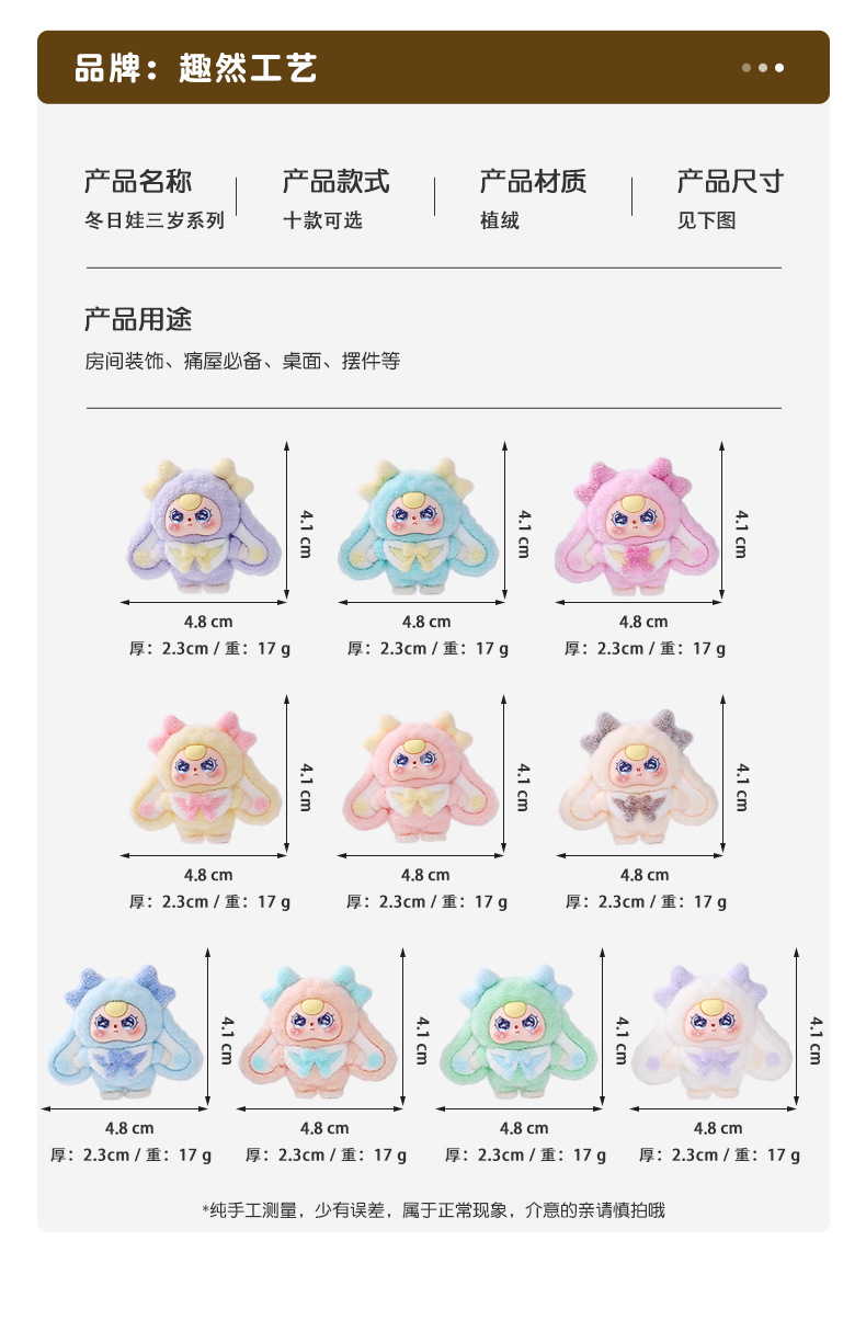 可爱植绒睡衣娃三岁萌粒公仔桌面小摆件潮玩直播盲盒盲袋配件批发