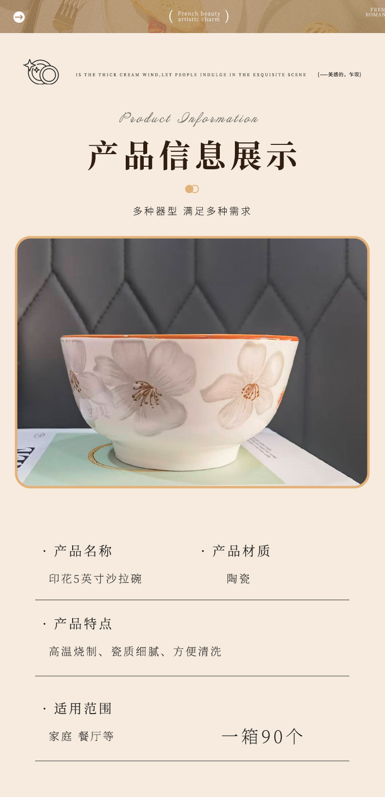 批发印花5英寸沙拉碗陶瓷碗家用碗新款高颜值5英寸米饭碗釉下彩