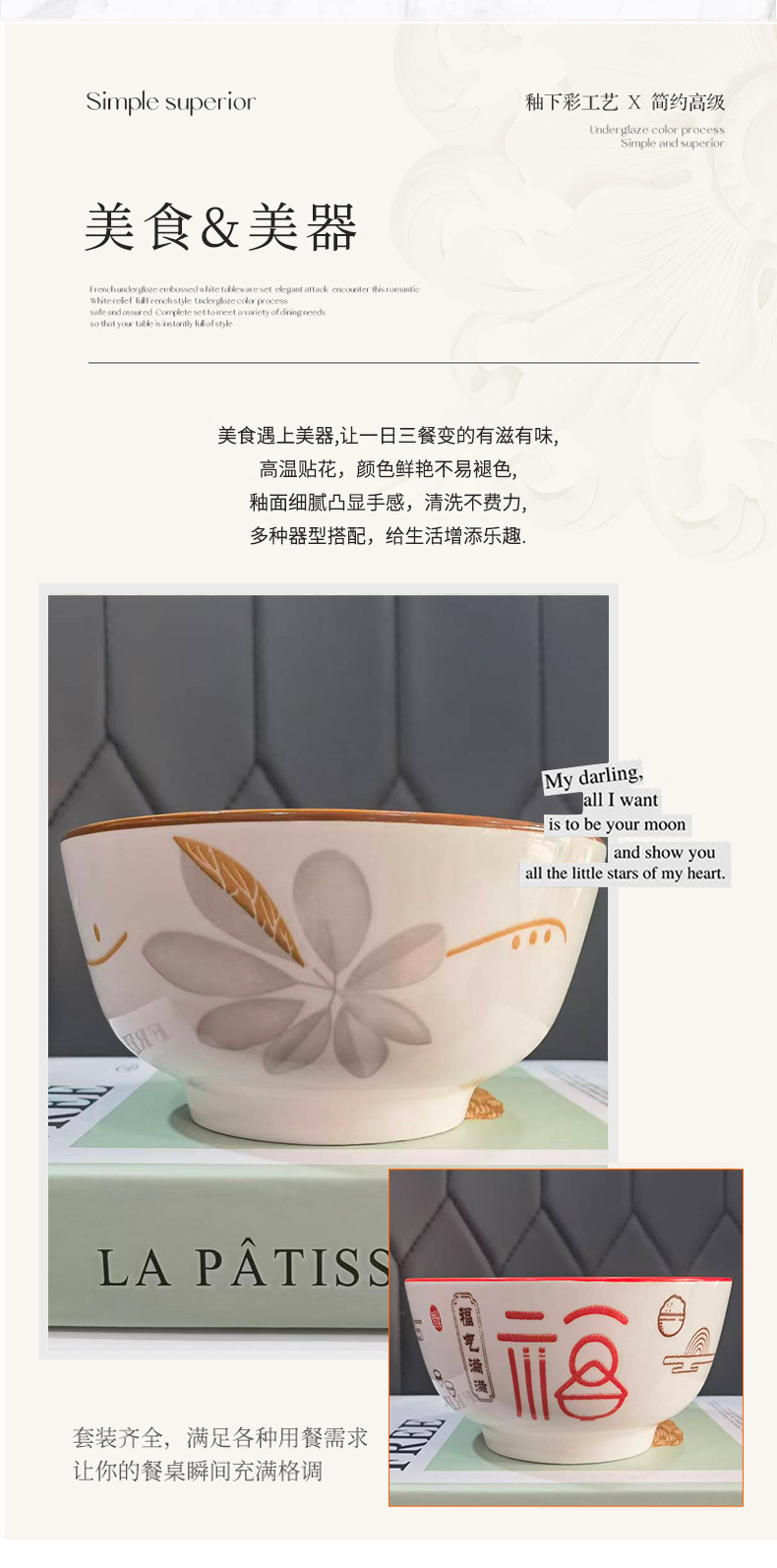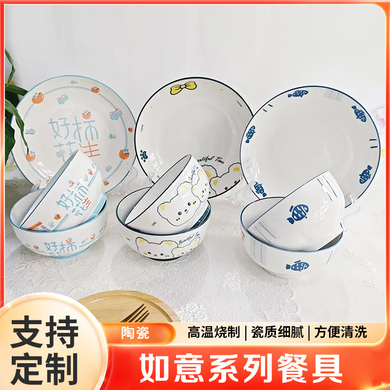 如意系列餐具陶瓷米饭可爱卡通釉下彩家用沙拉碗饭碗儿童吃饭汤碗