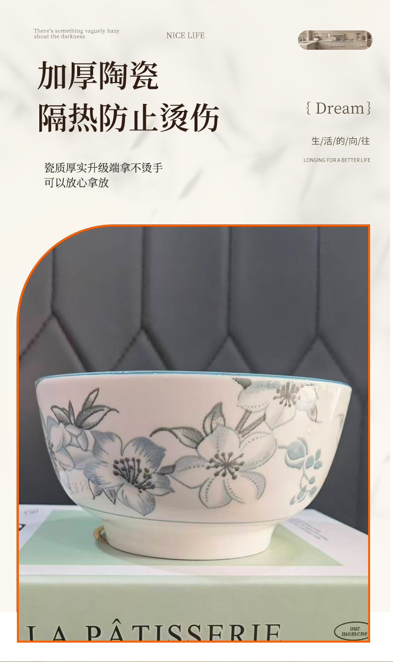 メーカー卸売7航空和風陶器ボウル陶器食器健康釉下彩スープボウルご飯茶碗電子レンジ対応