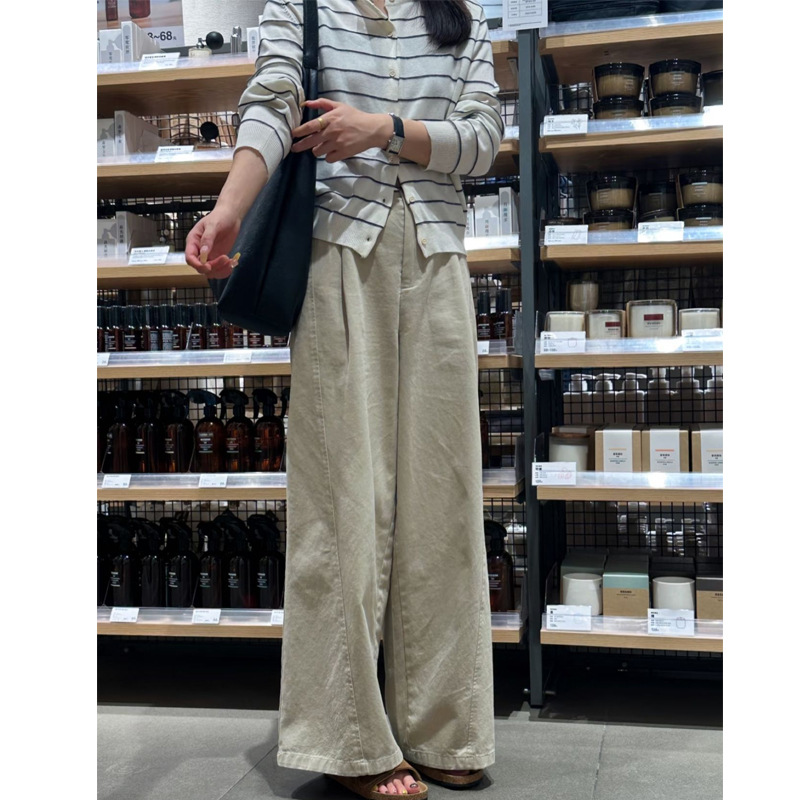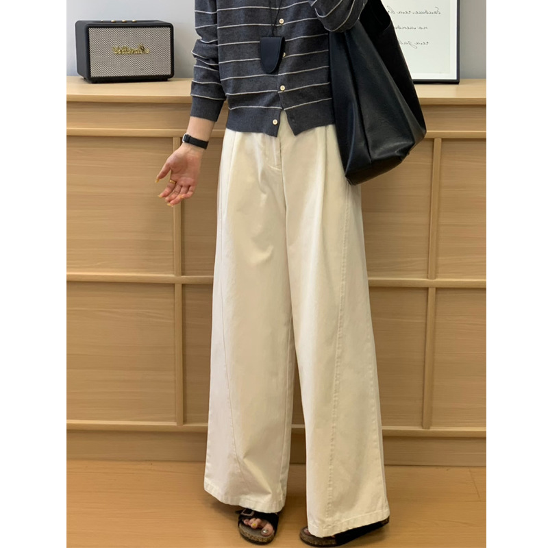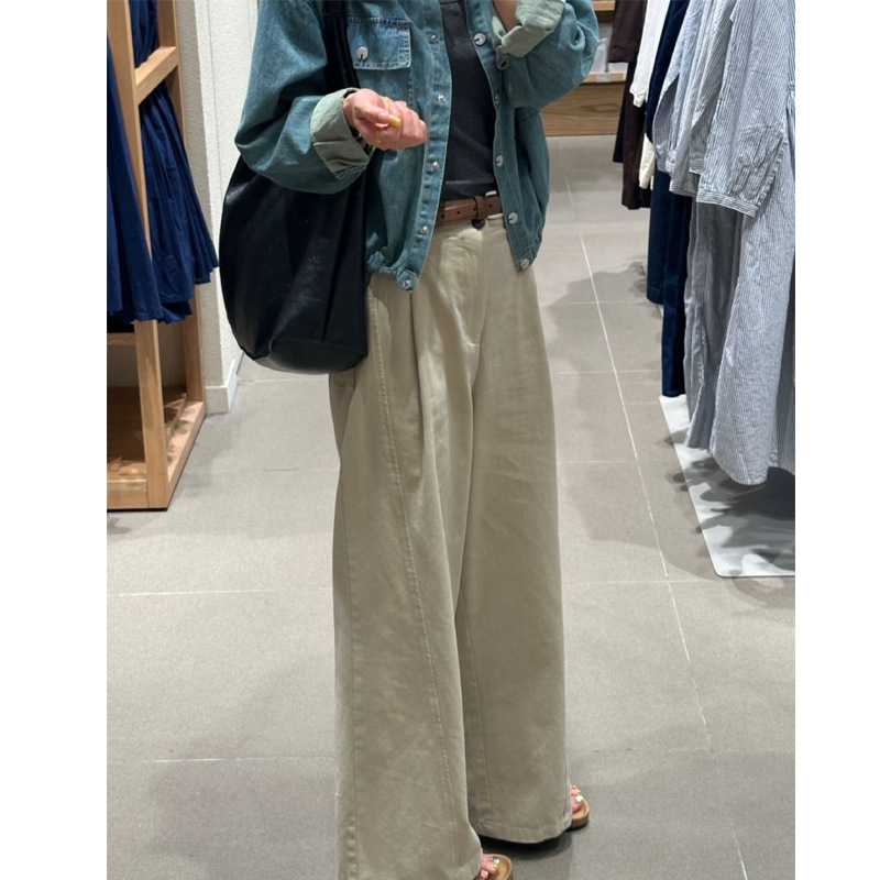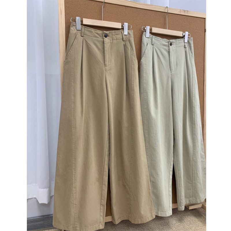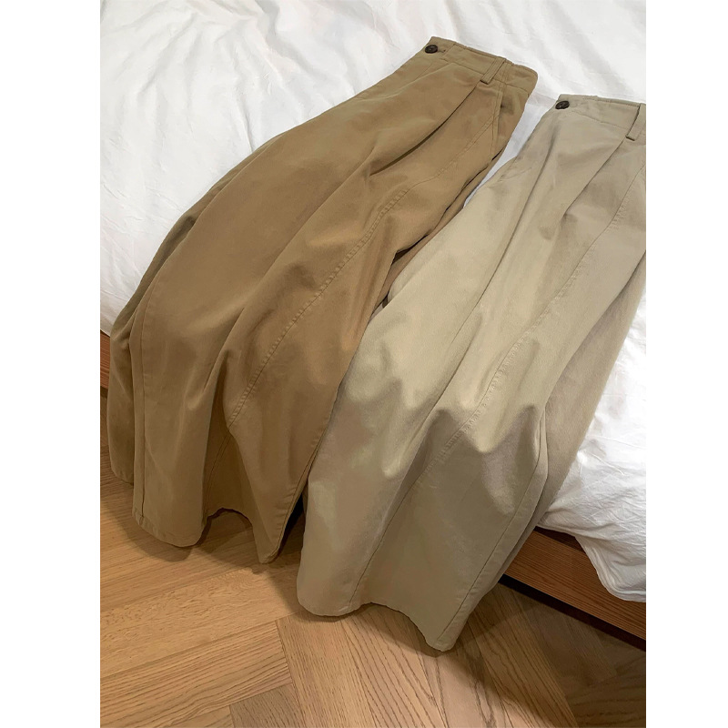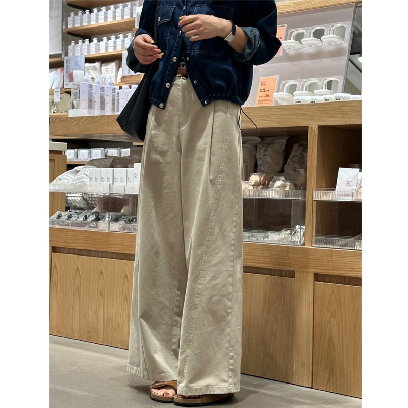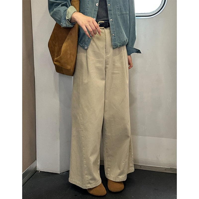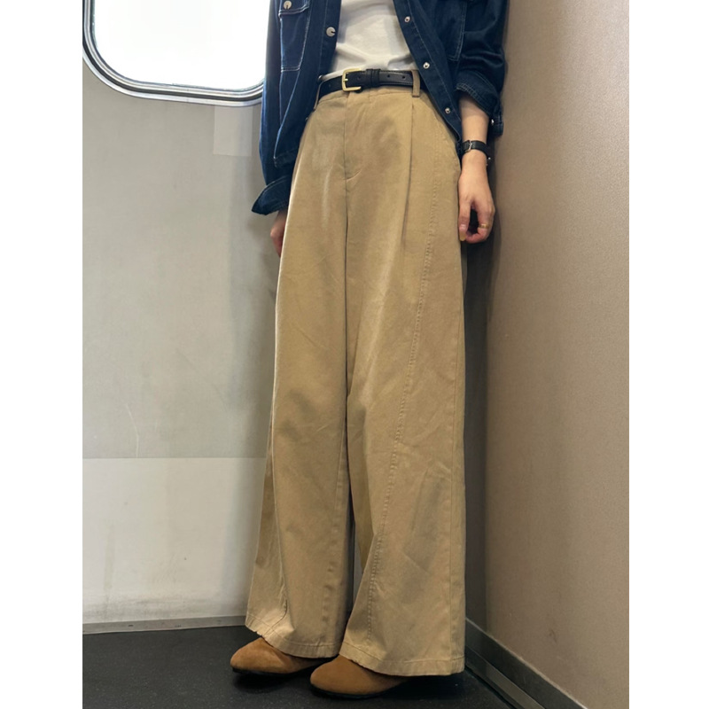 韩系卡其色百搭阔腿裤女高腰宽松垂感休闲直筒显瘦裤子