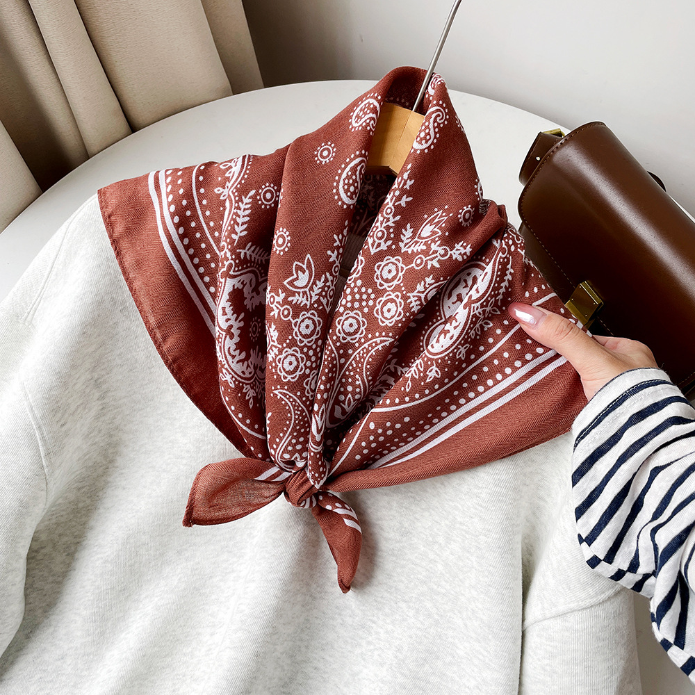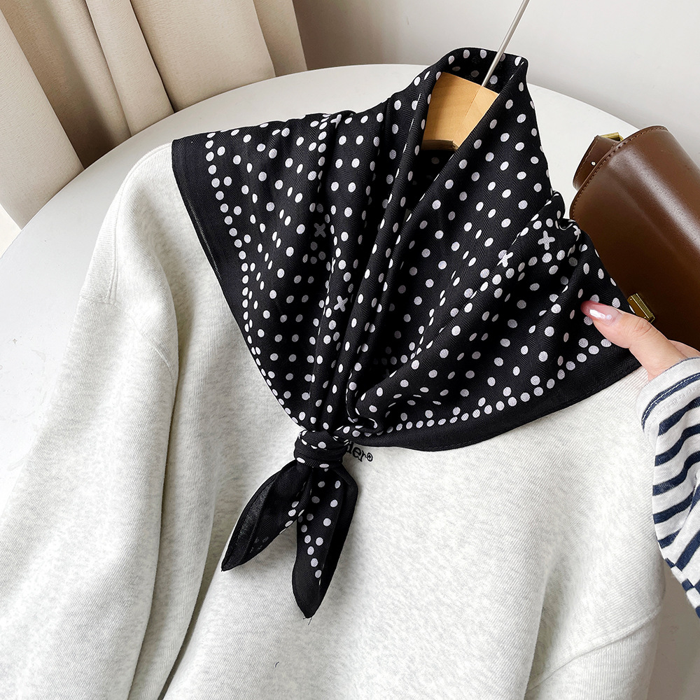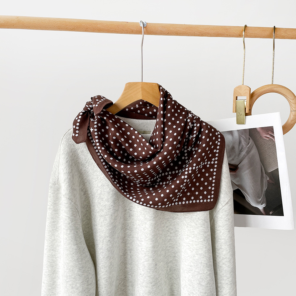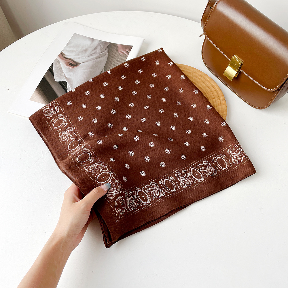亲肤柔软棉麻透气护颈小方巾波点腰果花丝巾出口韩单领巾丝巾女士