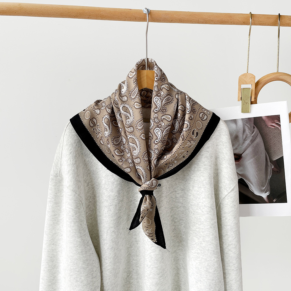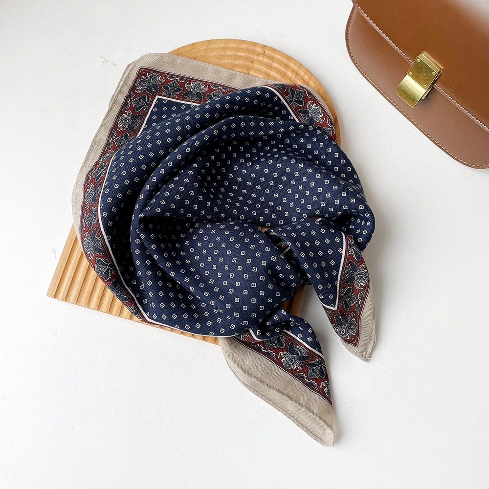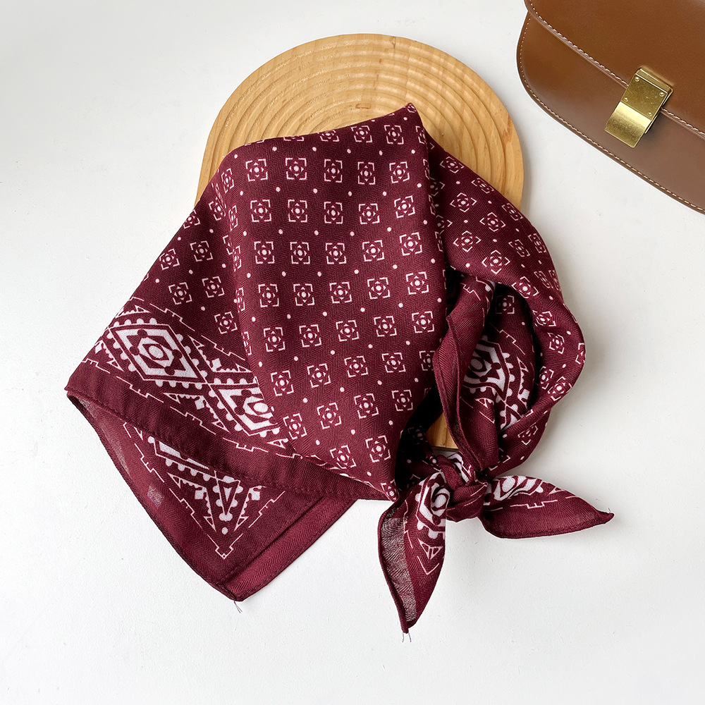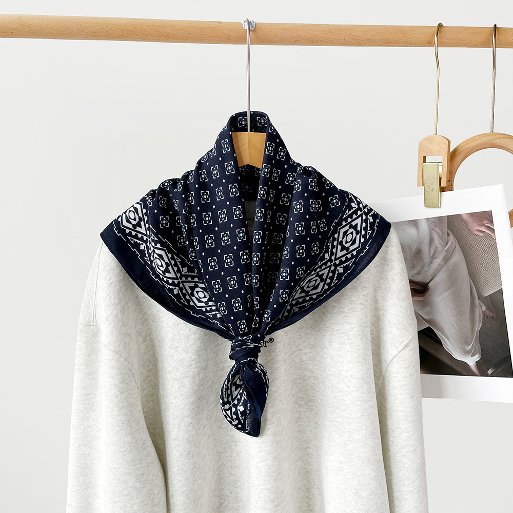 亲肤柔软棉麻透气护颈小方巾波点腰果花丝巾出口韩单领巾丝巾女士
