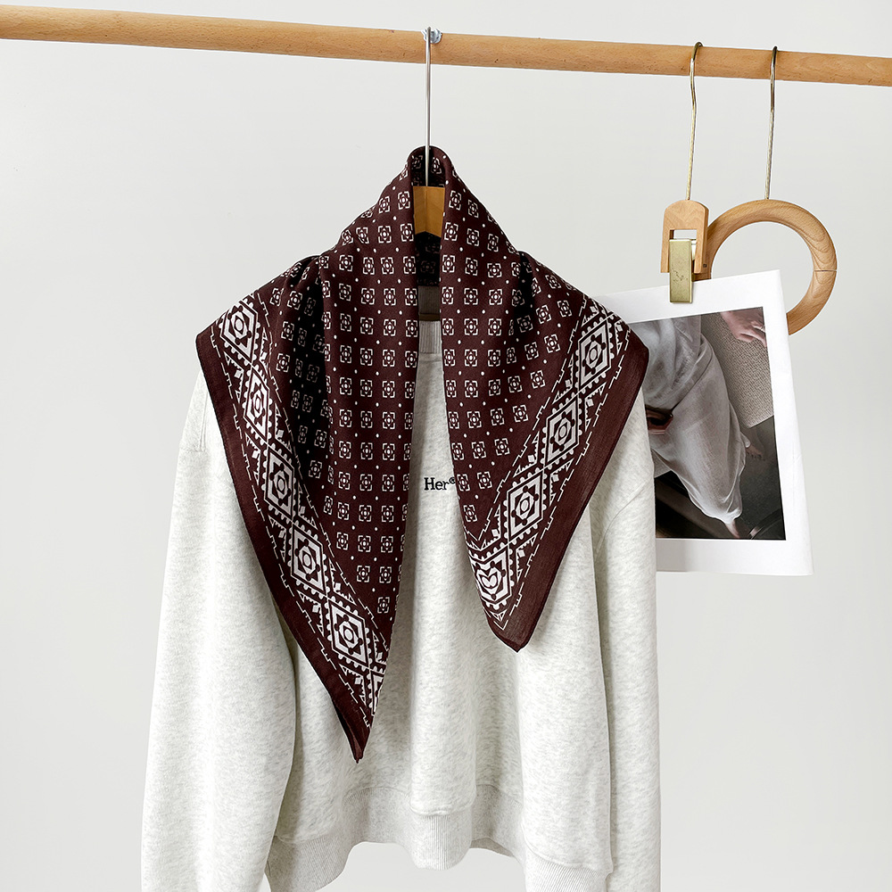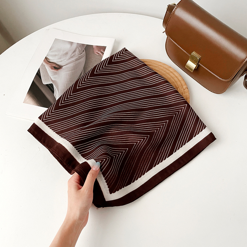 新款气质高级感系脖棉麻丝巾女士韩系慵懒风百搭棕色系列小方巾