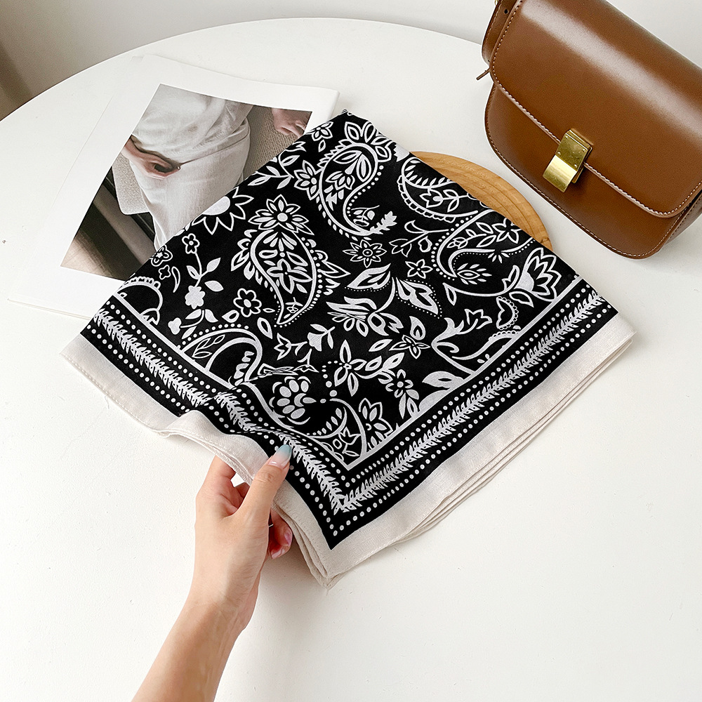 黒と白のシンプルなカシューフラワーフォイルスカーフ、ハイエンドのエスニックスタイルのウエストスカーフ、装飾スカーフ、スカーフ、職場装飾スカーフ