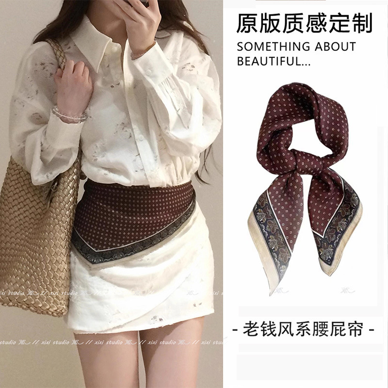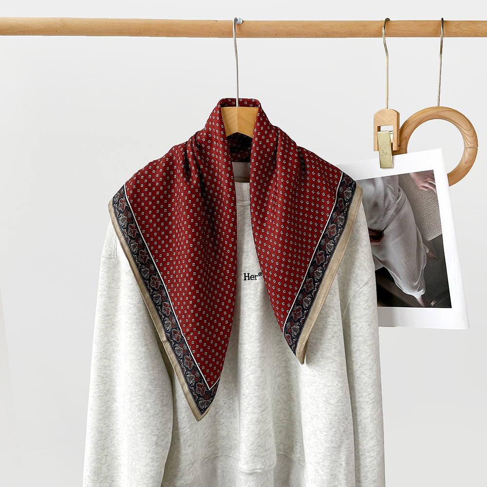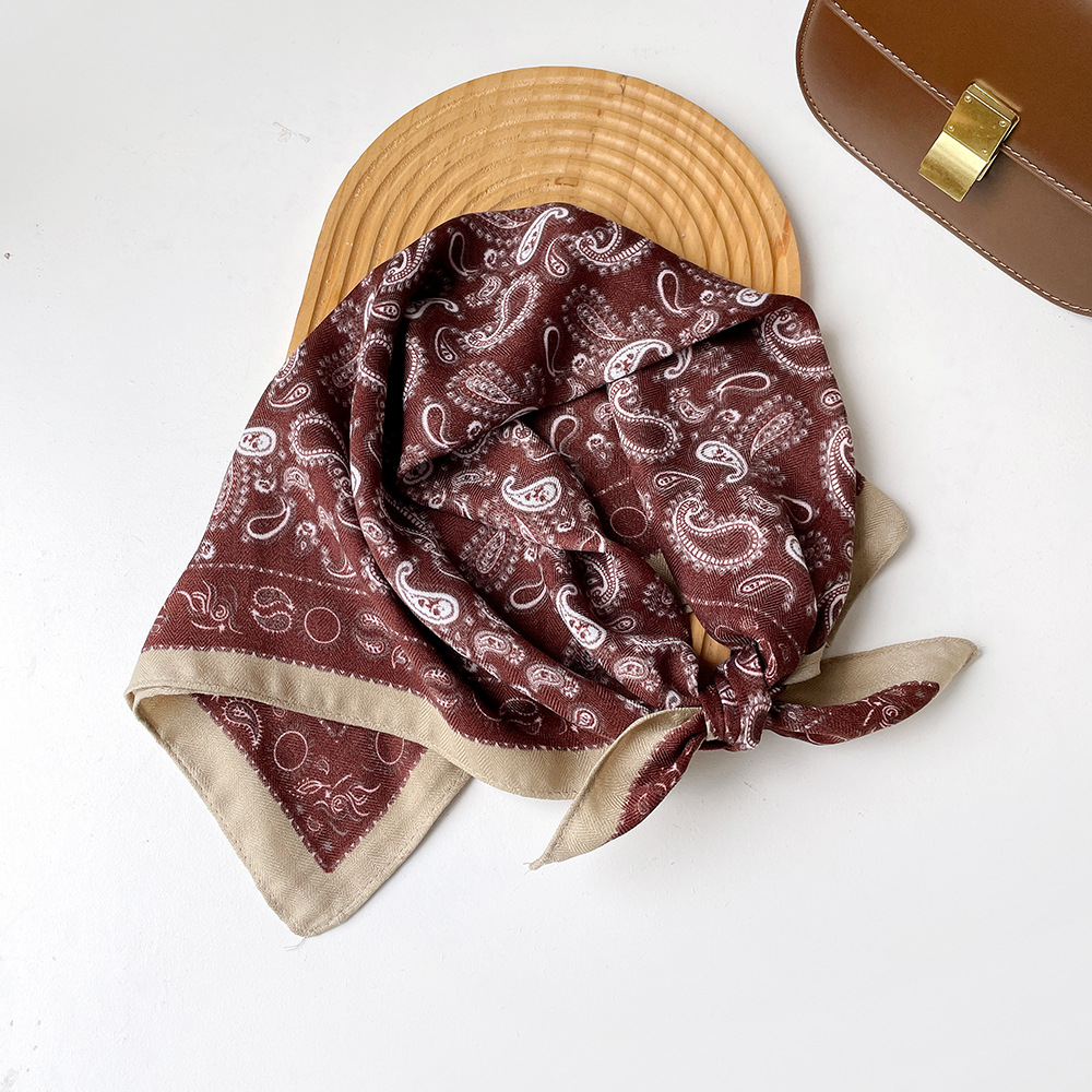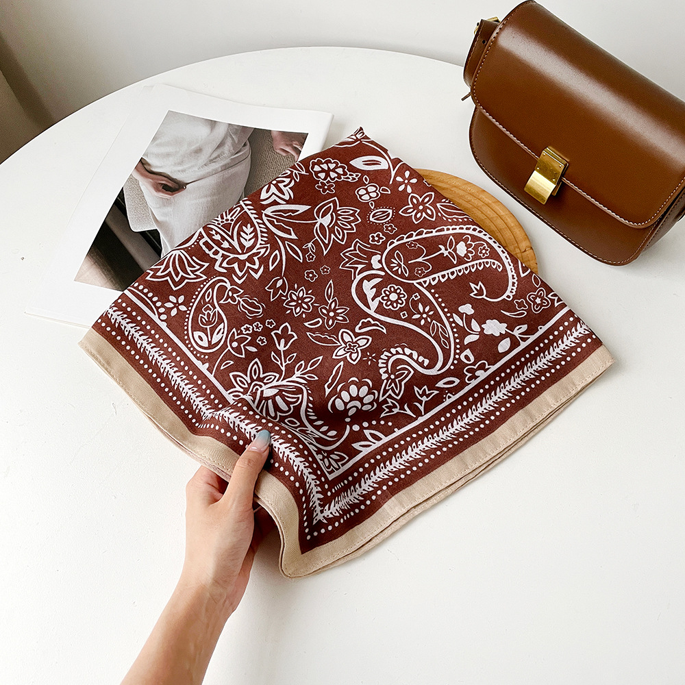 复古咖色腰果花丝巾服装店丝巾老钱风系腰屁帘丝绒领巾小方巾批发