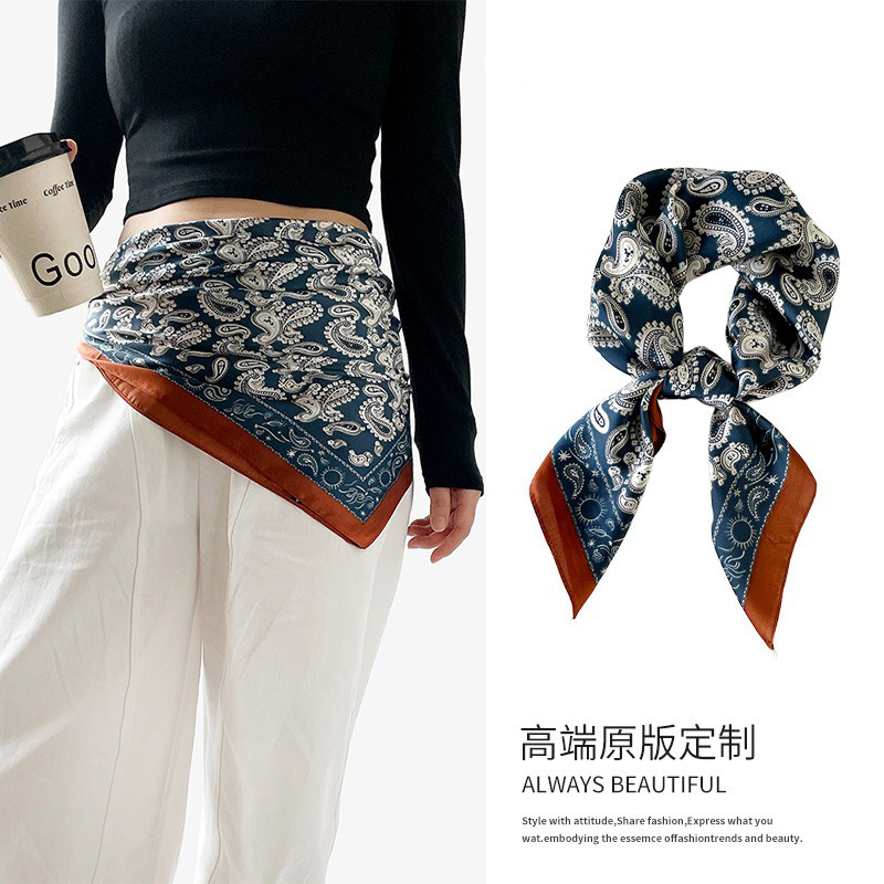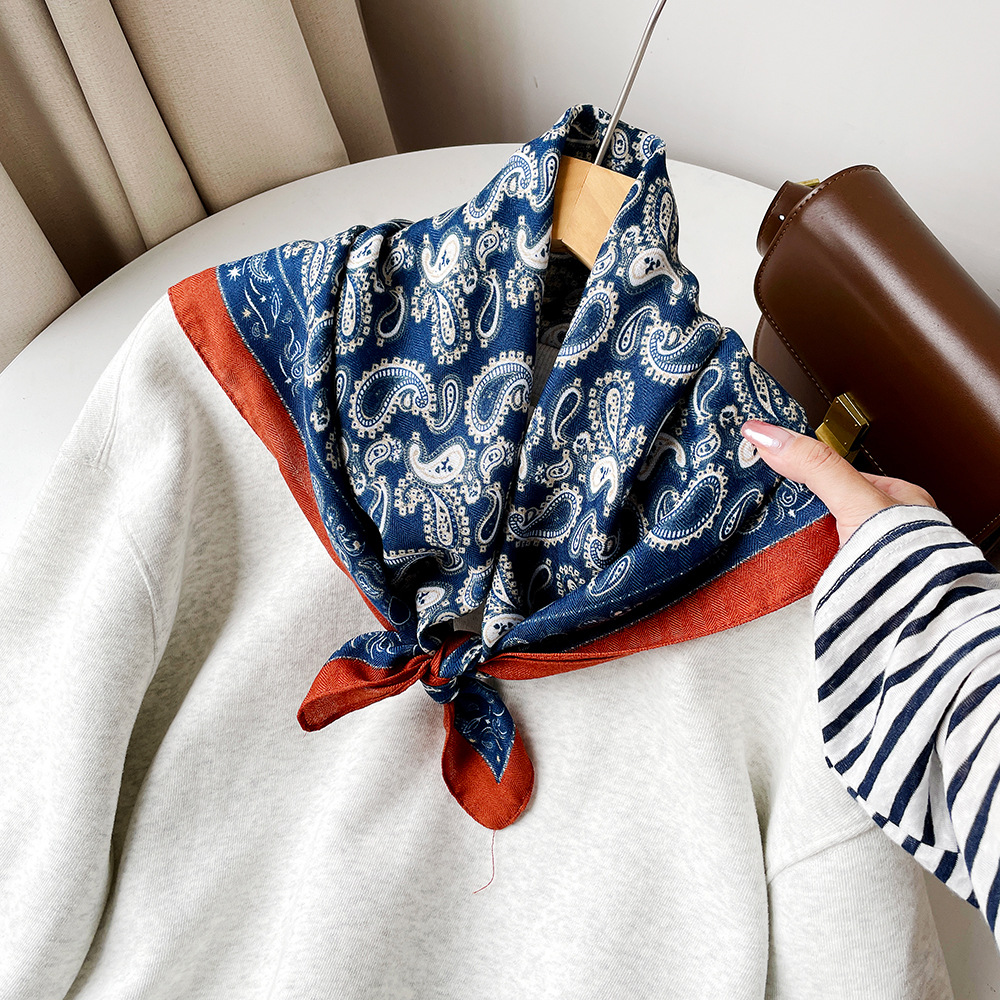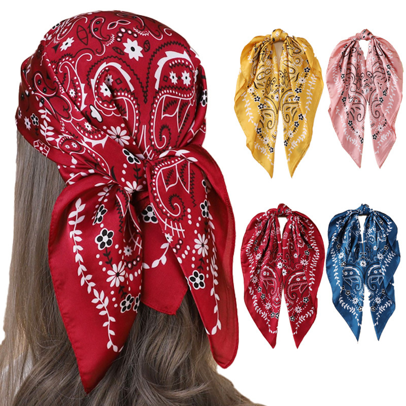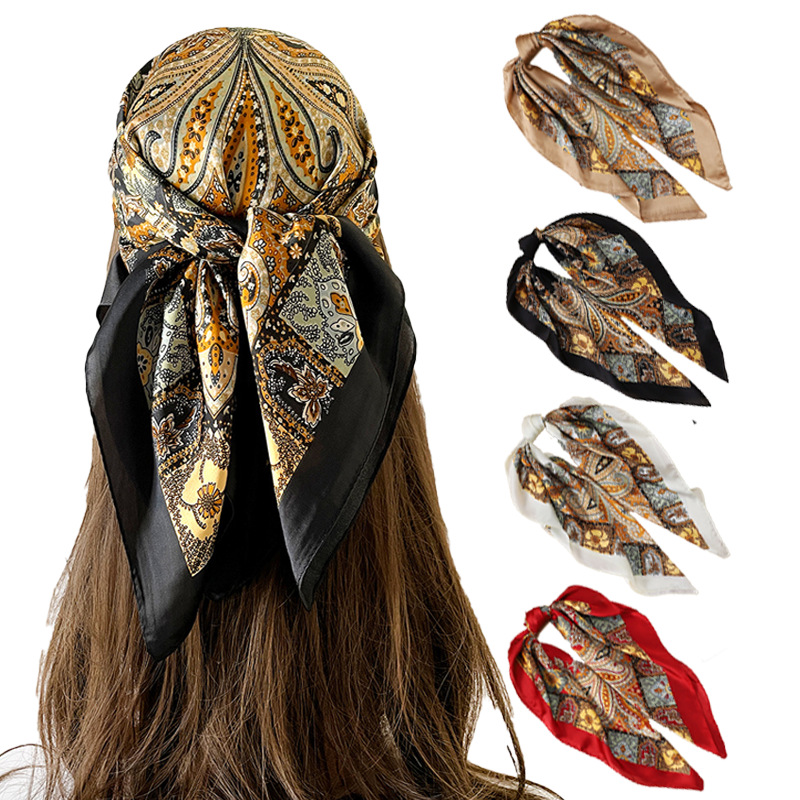 クロスボーダーカシューフラワースクエアスカーフ女性用 70 高級装飾プリントスカーフ模擬シルクファッションシャツスカーフ