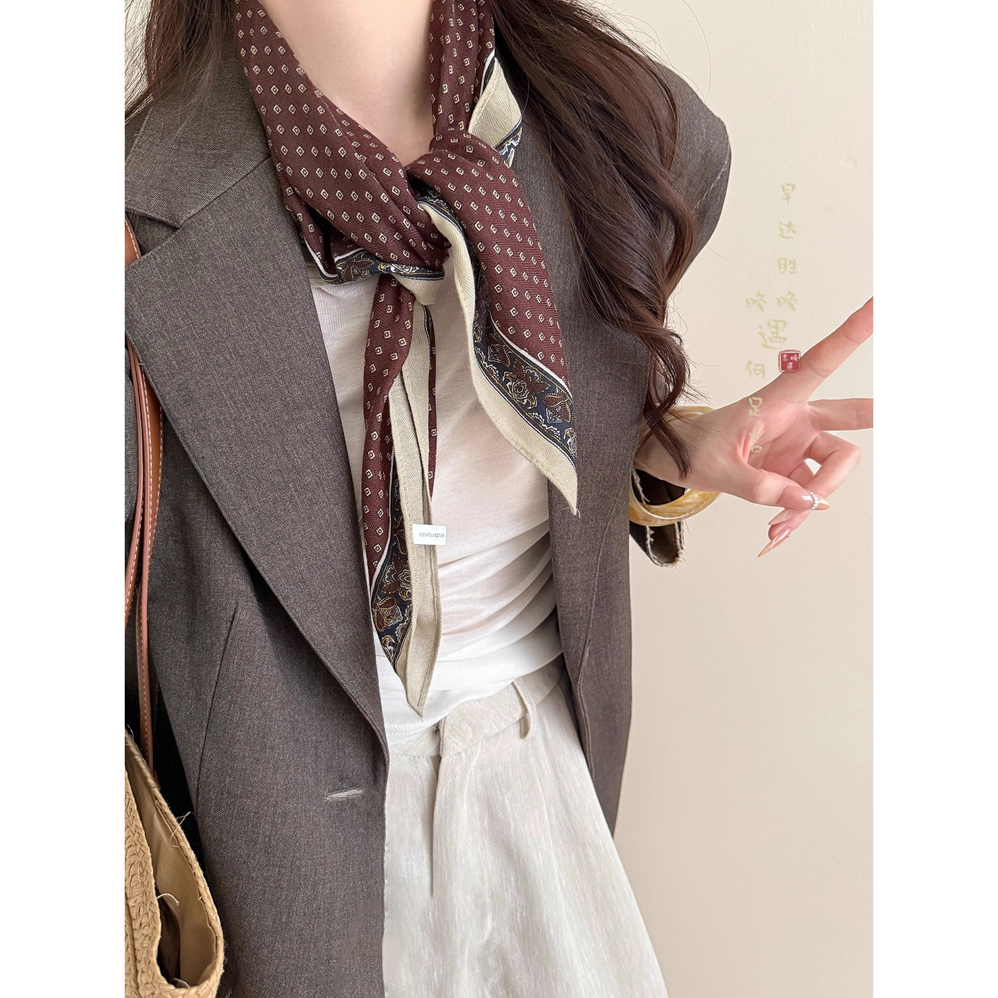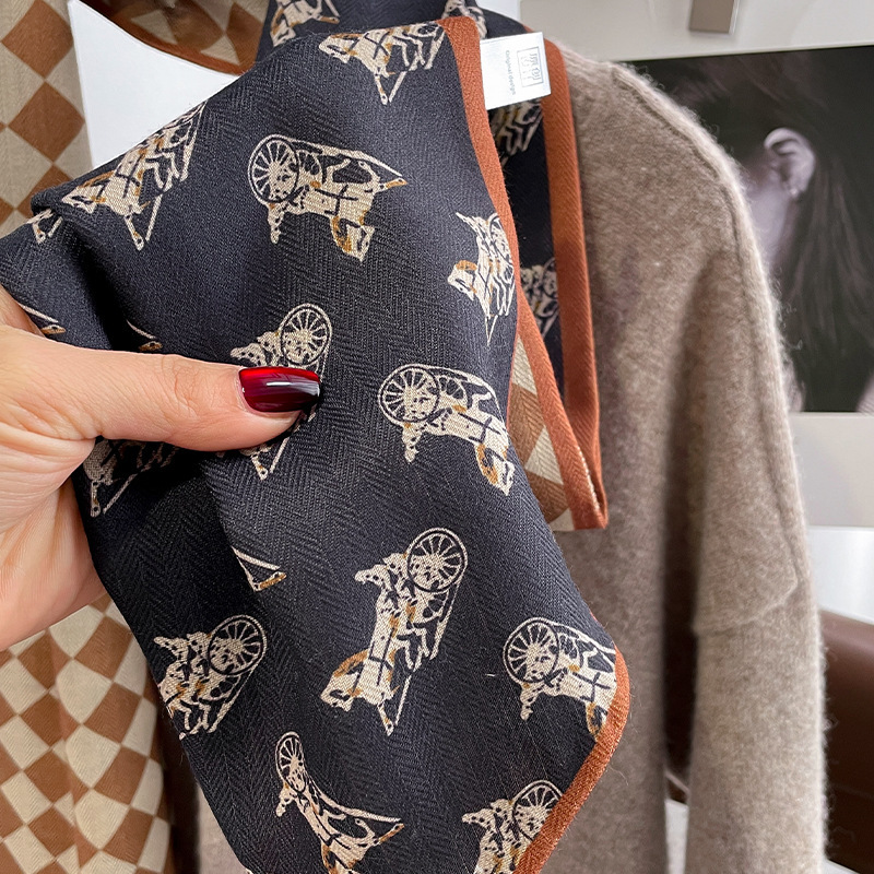 秋冬美拉德咖色丝巾女外搭复古秋季披肩方巾配饰新品轻奢高级颈饰