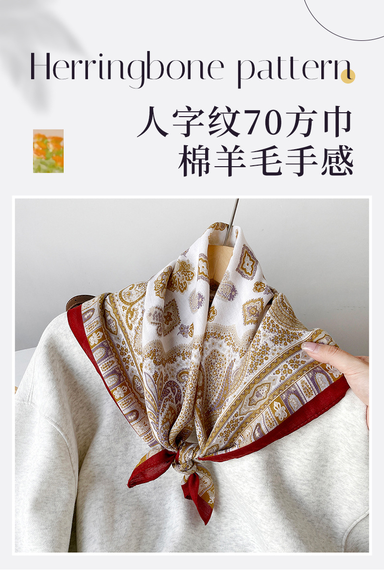 新しいヘリンボーンカシューナッツスカーフ、カラーブロックスクエアスカーフ、文学的でレトロな小さなスクエアスカーフ、装飾スカーフ、通気性のあるスカーフ
