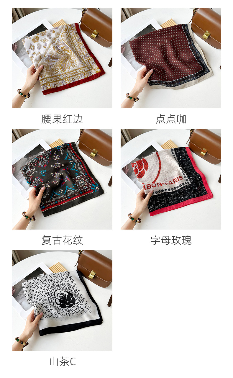 70*70 模擬シルク小さな正方形のスカーフ赤いシルクスカーフ女性のための春と夏の韓国スタイルの文学多用途ヘアバンド装飾スカーフ