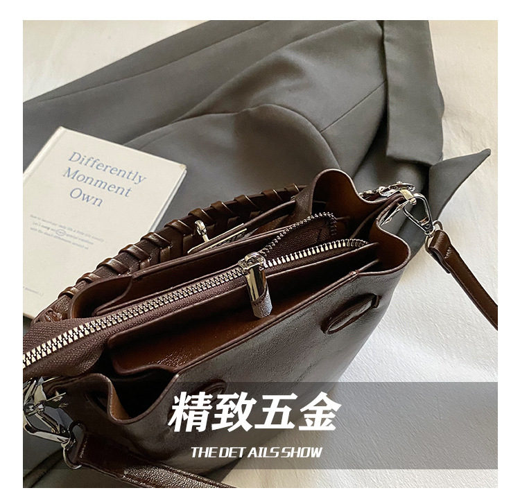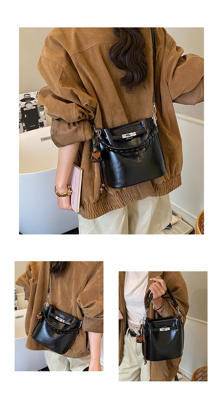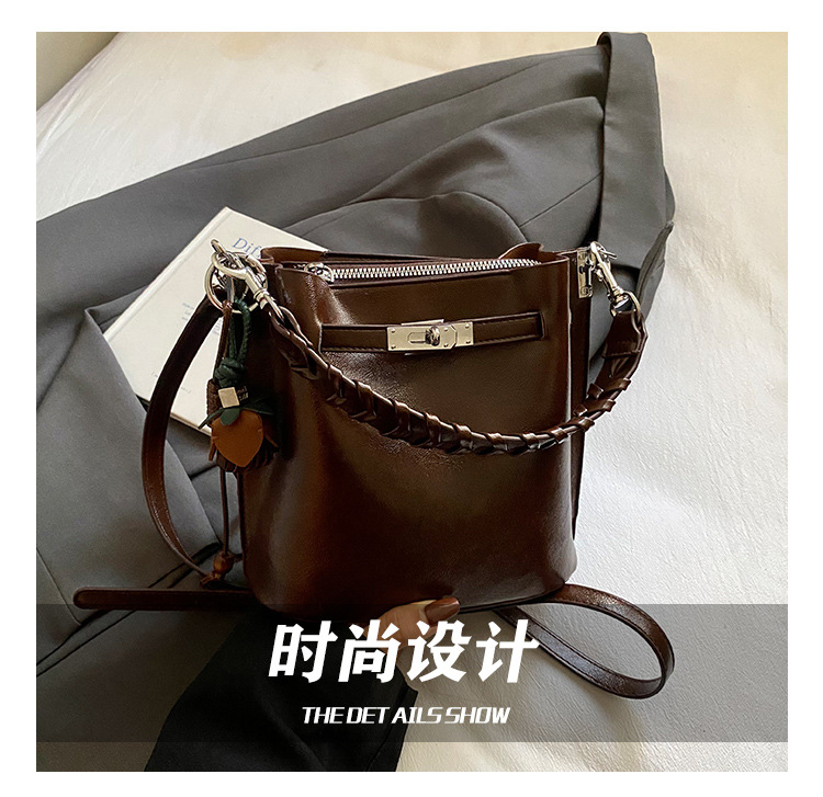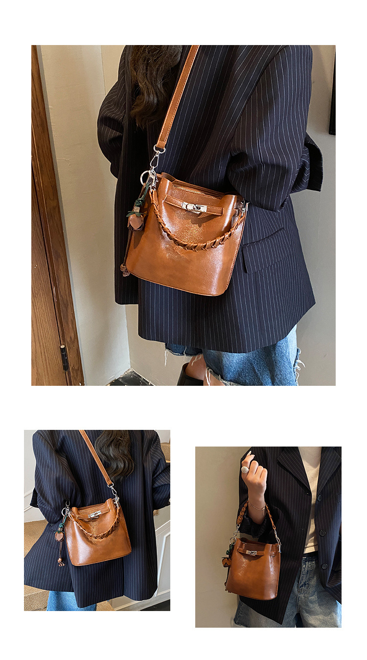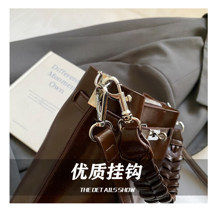 手提水桶包女2026新款手提包简约高级感复古单肩包潮锁扣斜挎包包