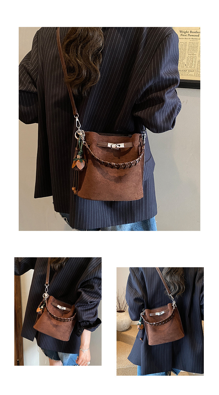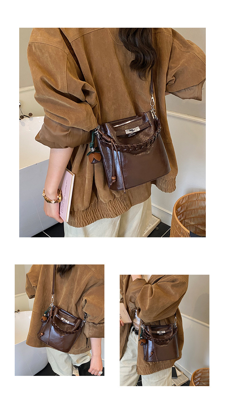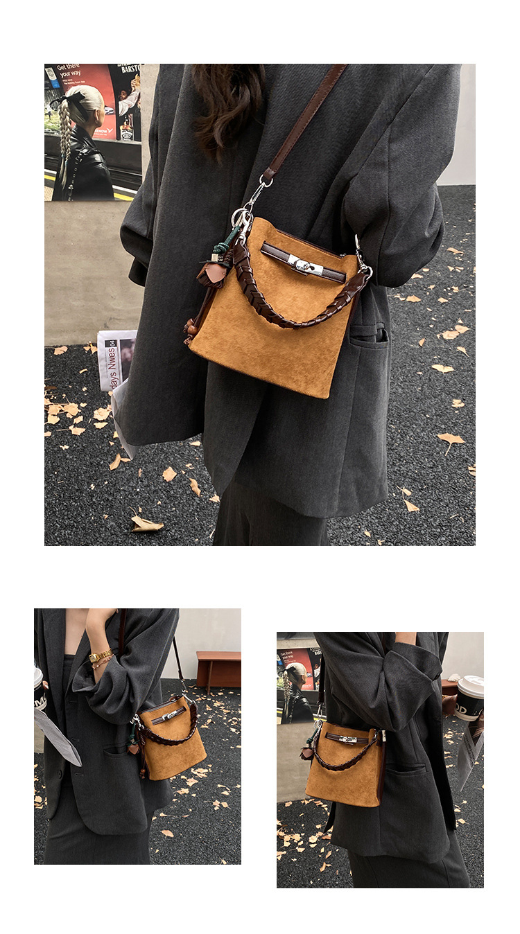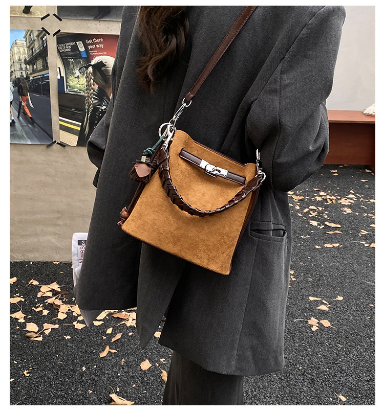 手提水桶包女2026新款手提包简约高级感复古单肩包潮锁扣斜挎包包