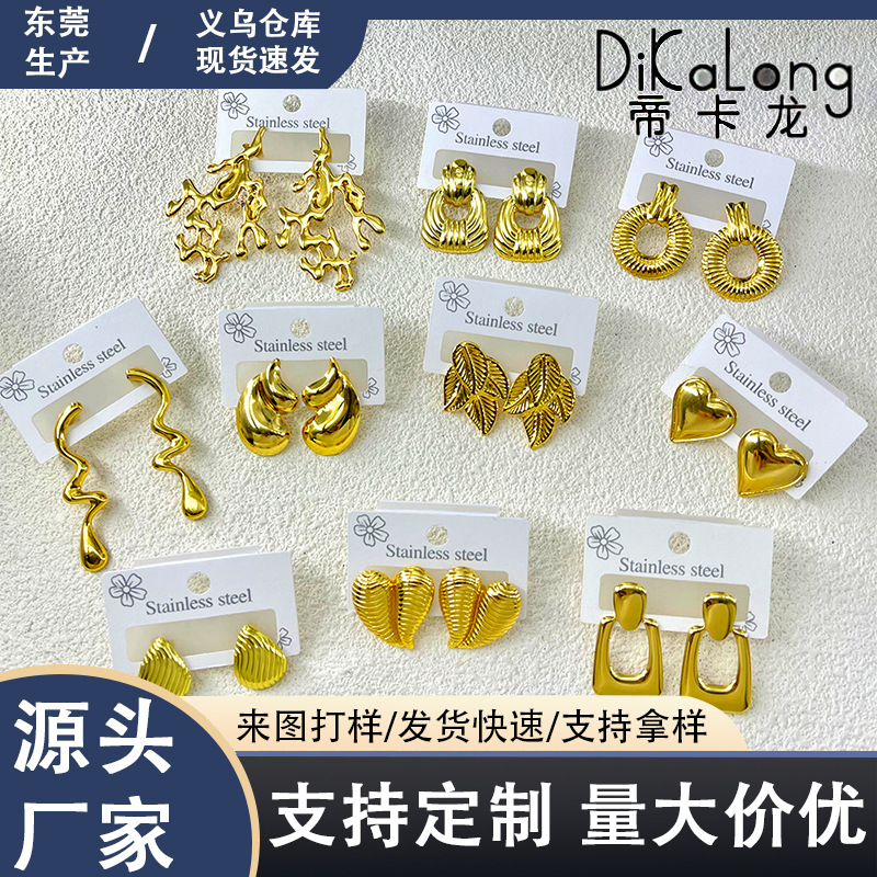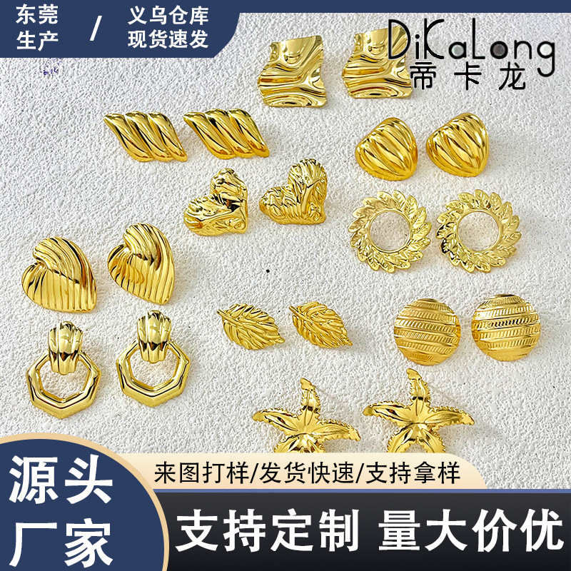 欧美热销不锈钢油压耳钉时尚气质复古几何镀金耳钉女士高级感耳环