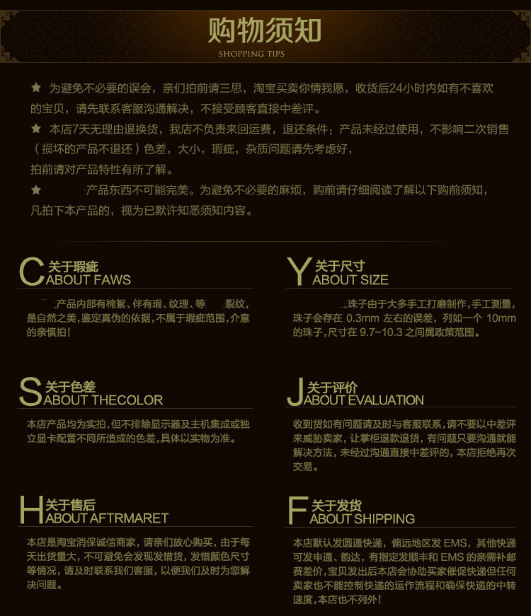【店主寄语】:产品为裸价,不带盒子,证书等,需要的另外拍哦~颜色深浅路由差异