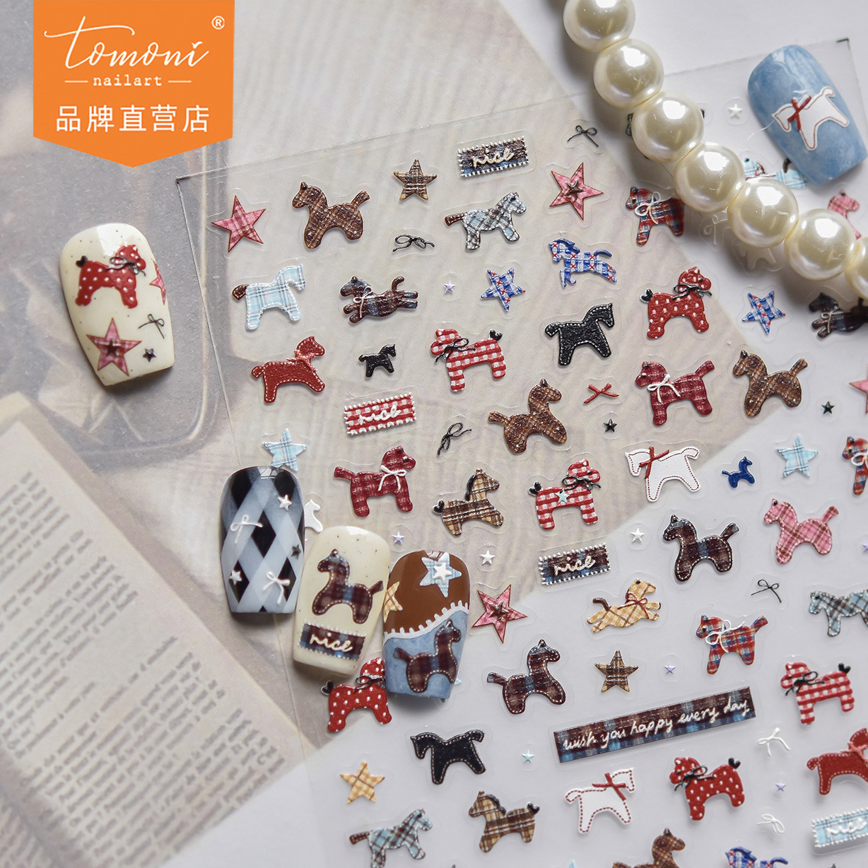 tomoni浮雕美甲贴纸 diy爆款甜酷指甲贴现代简约布料小马贴纸素材