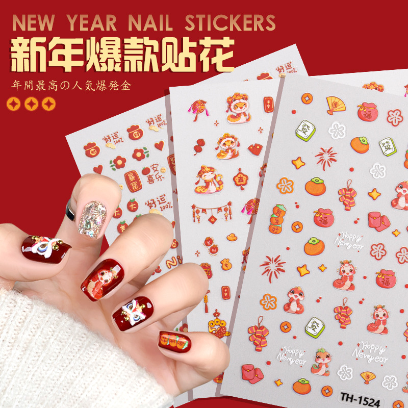 正祥の新型蛇新年型3dネイルシールDIY箔押し爪貼りINS花火ネット赤型ネイルシール