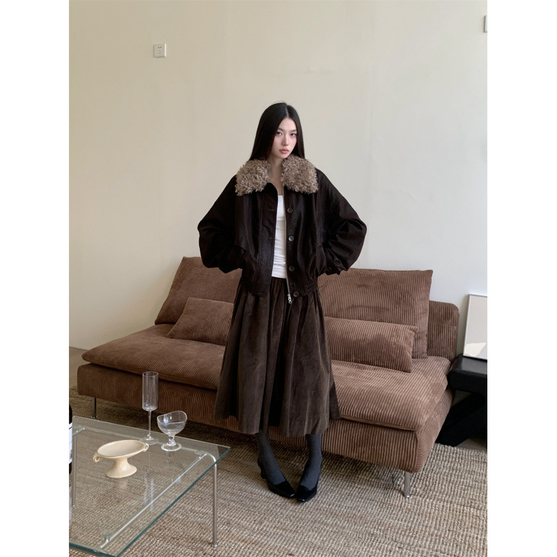 2025秋冬新款可拆卸毛领水洗皮衣 重工做旧翻领外套