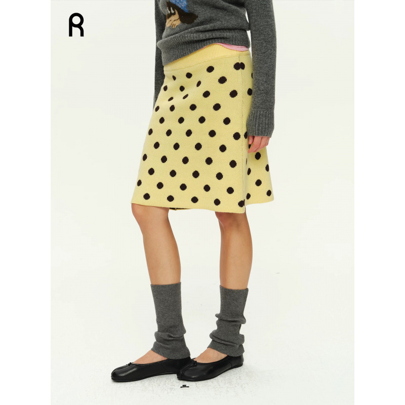 2025冬季新款波点毛织半身裙女提花半裙针织裙法式复古