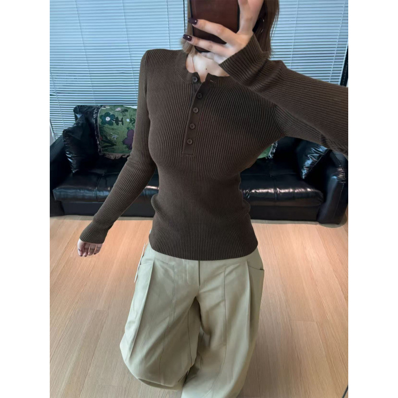 2025亨利领毛衣长袖针织打底衫复古老钱风圆领竖条内搭上衣
