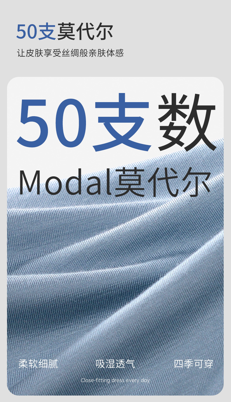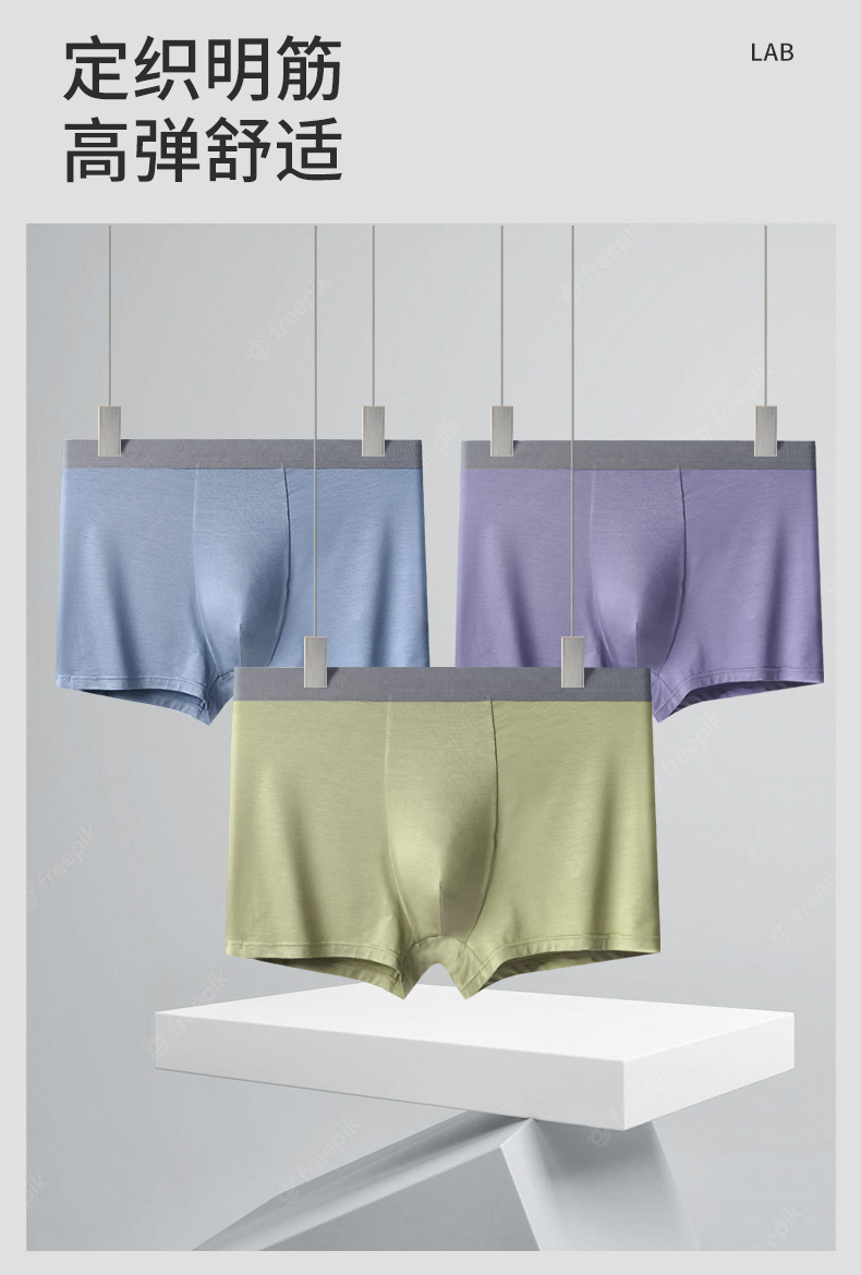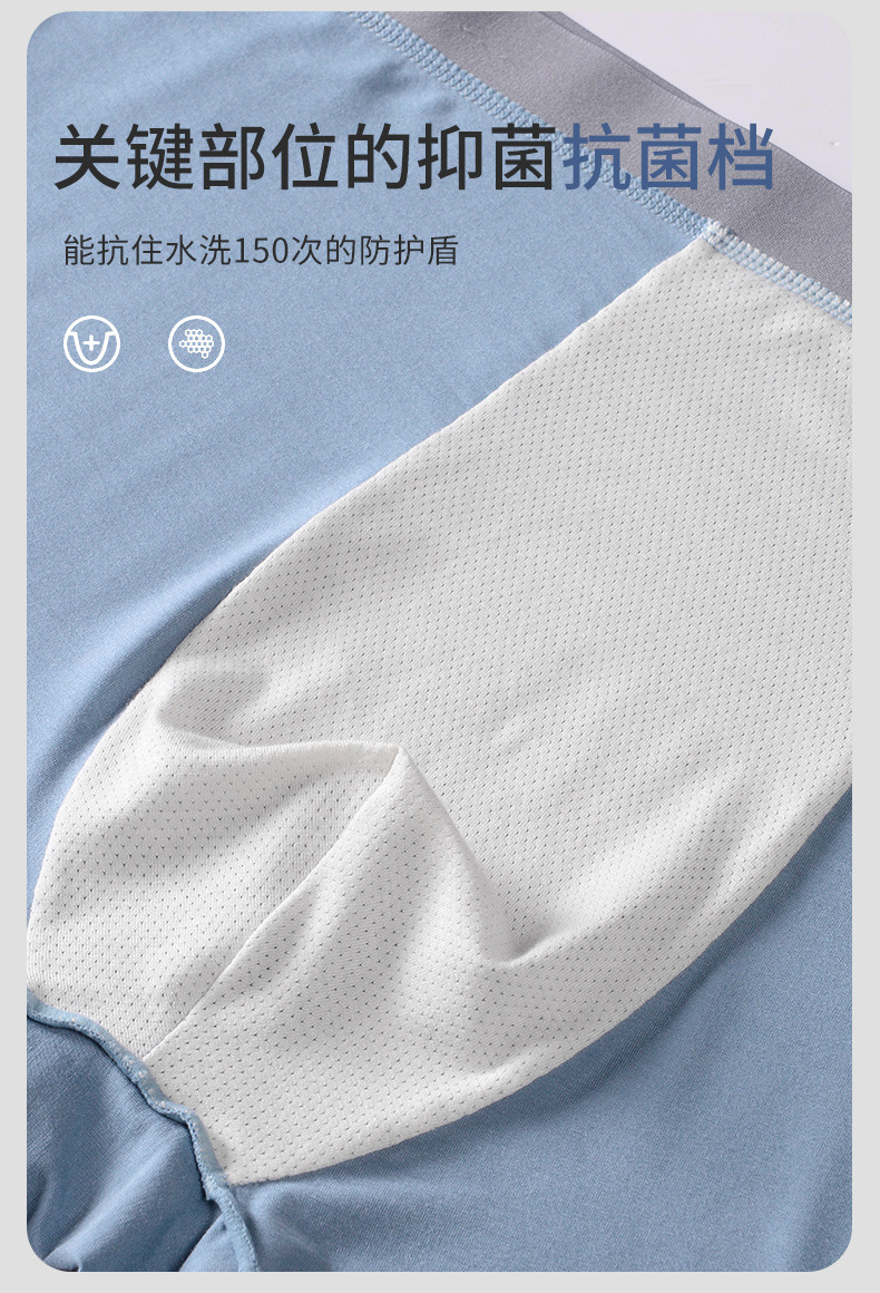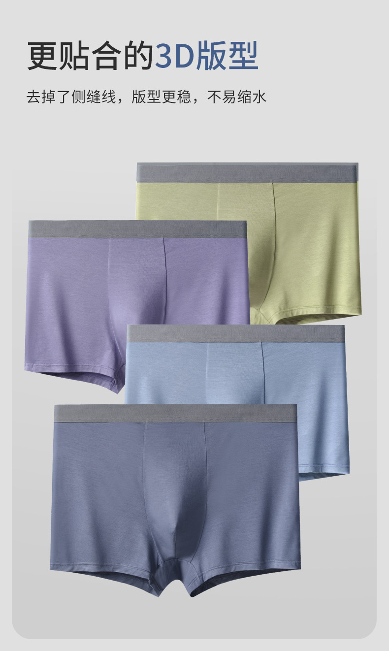 新款秋冬60支兰精莫代尔男士内裤 中腰透气平角7A抗菌四角短裤头