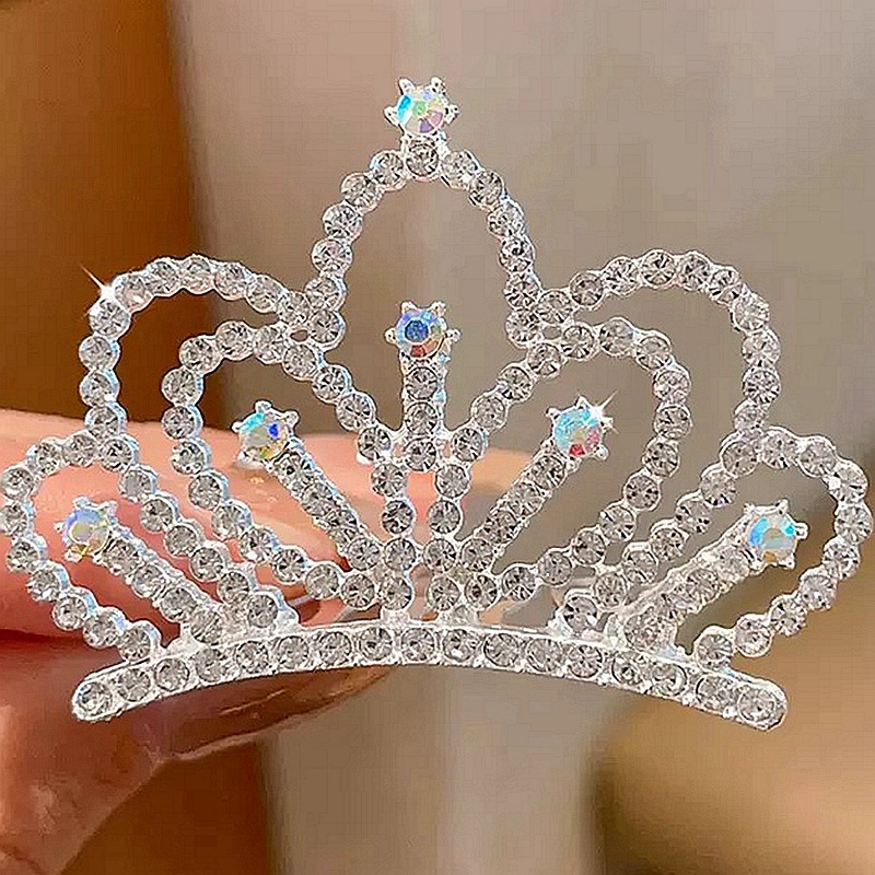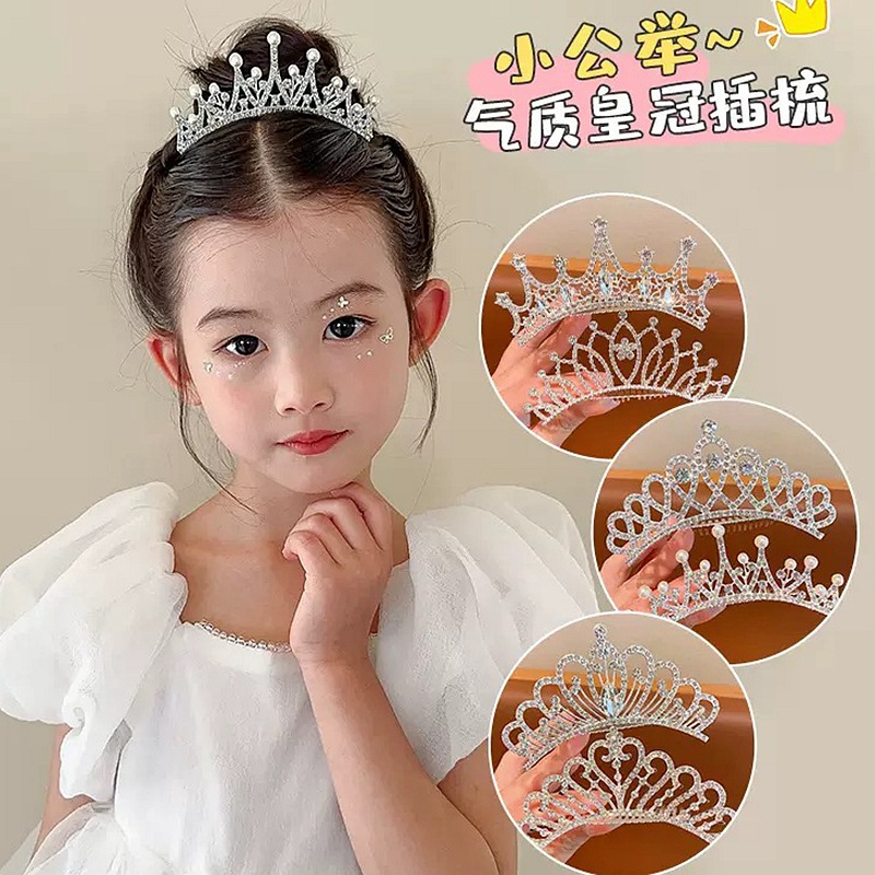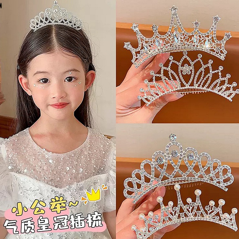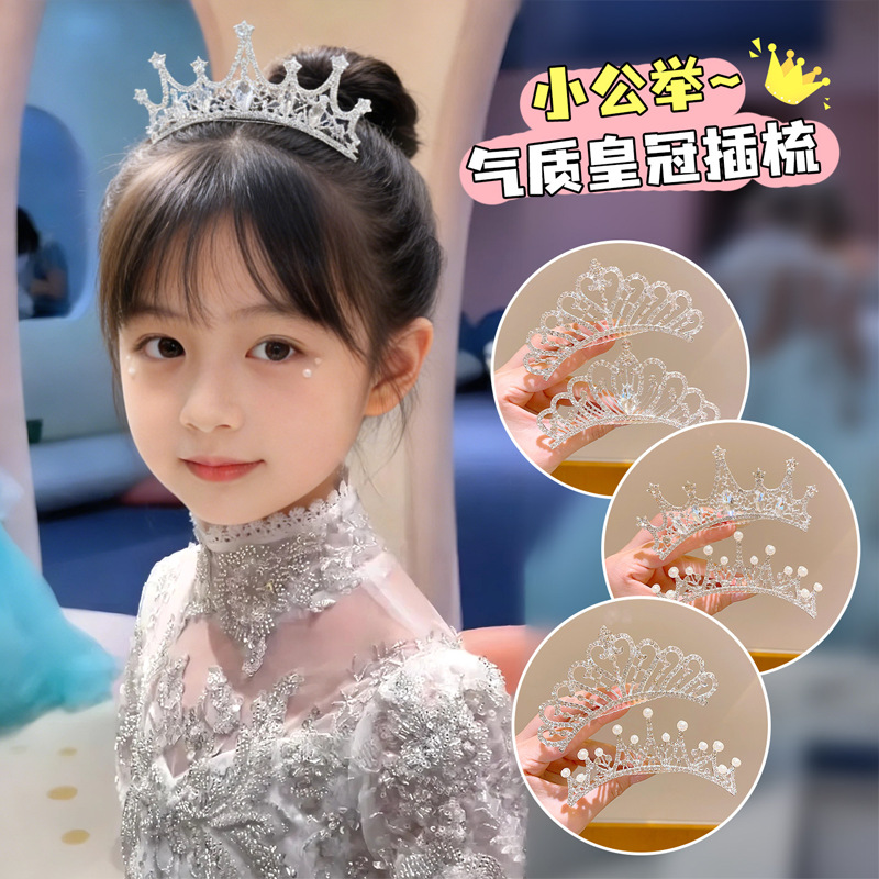 儿童水晶皇冠头箍女童公主生日表演发饰高级感闪钻王冠头饰插梳