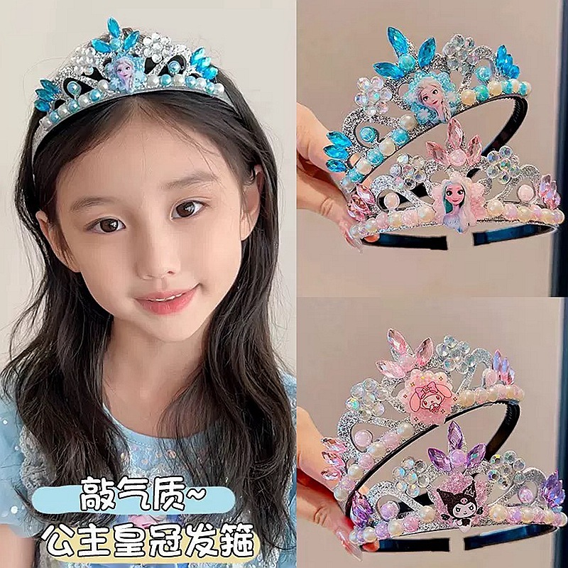 新款公主皇冠头箍儿童卡通水晶发箍女童发箍生日礼物大气王冠发饰