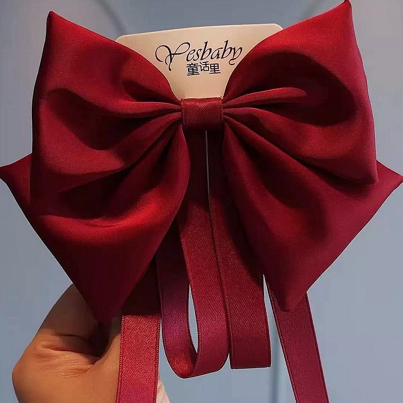 新款公主大蝴蝶结发夹缎面大蝴蝶结发夹儿童精致颅顶后脑勺批发发