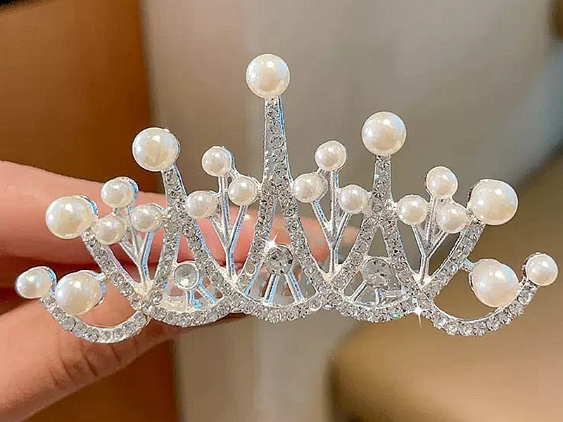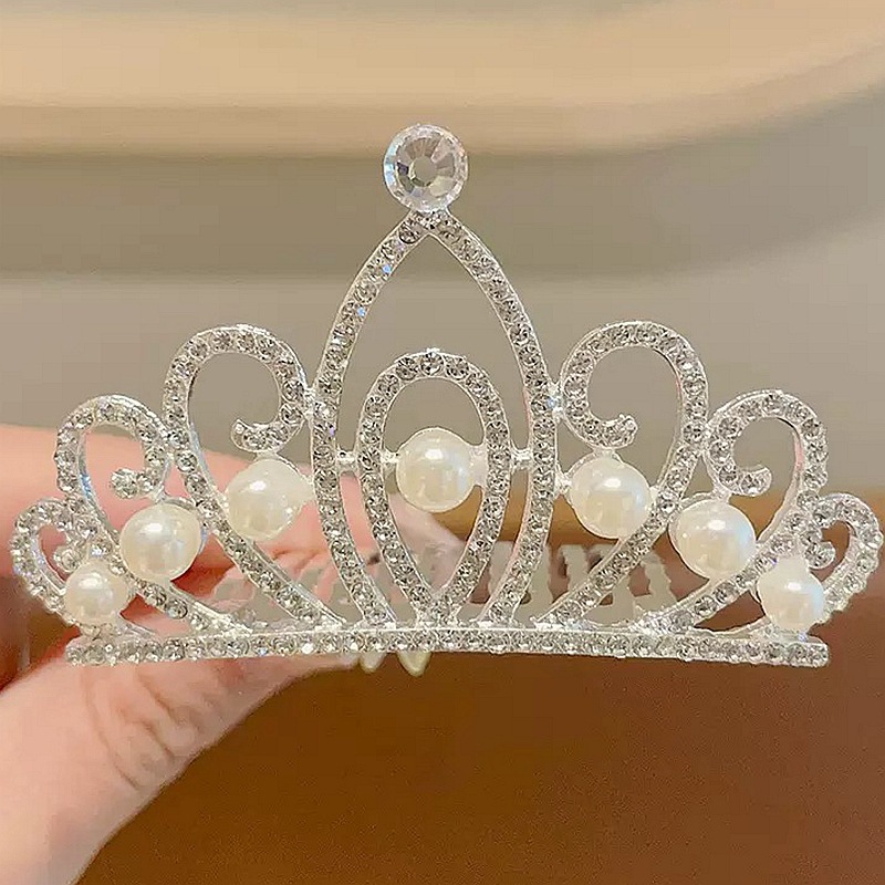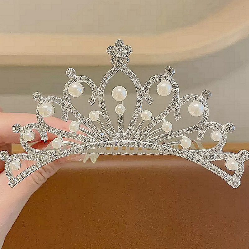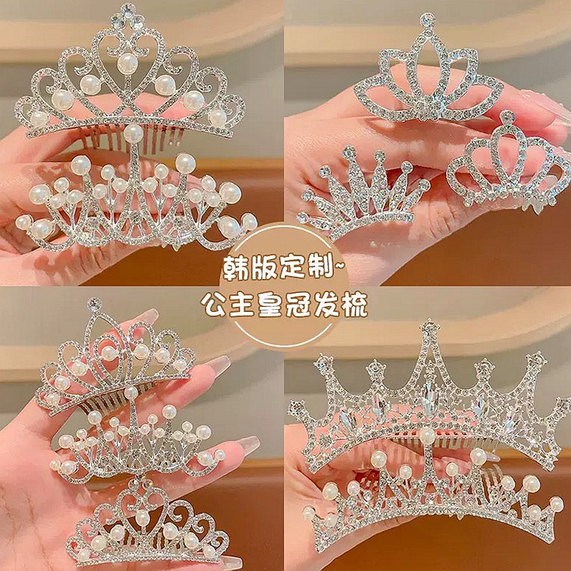 新款皇冠头饰儿童插梳女童珍珠水钻发夹生日演出饰品公主王冠发夹
