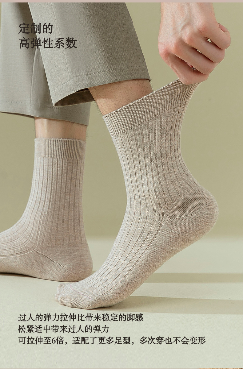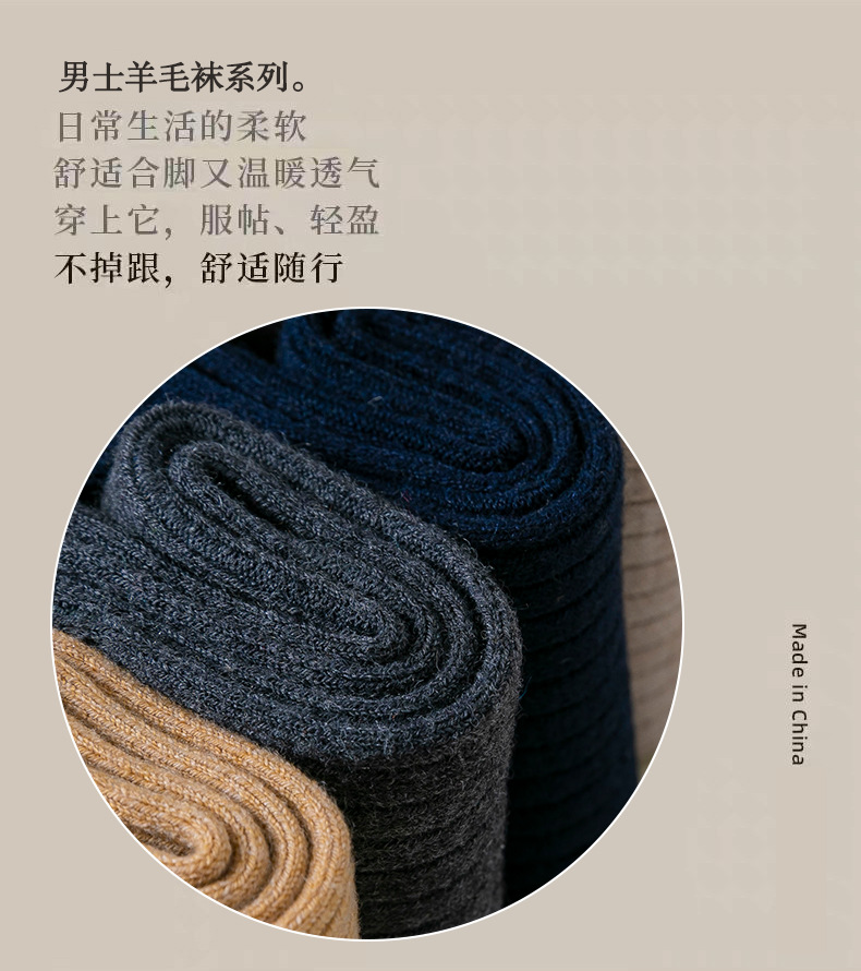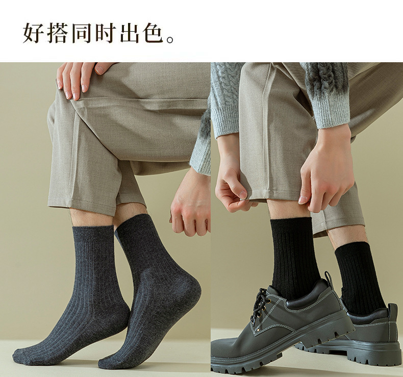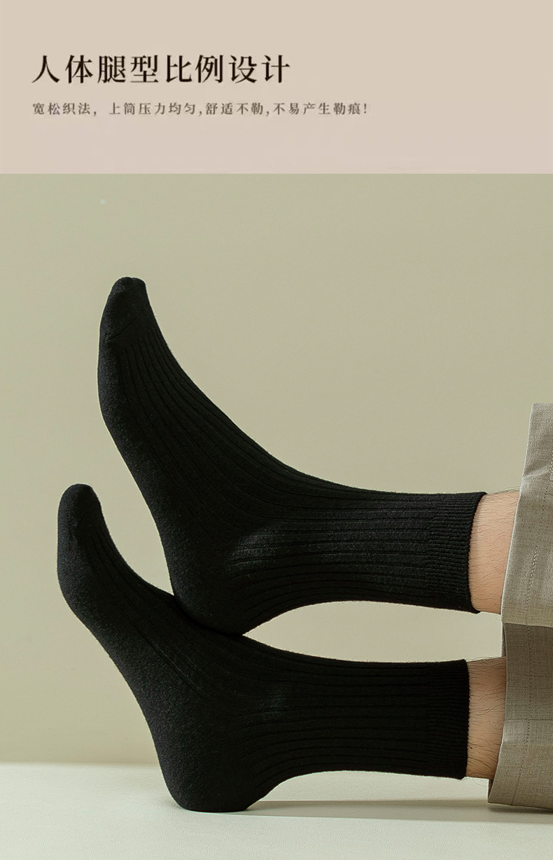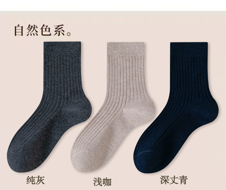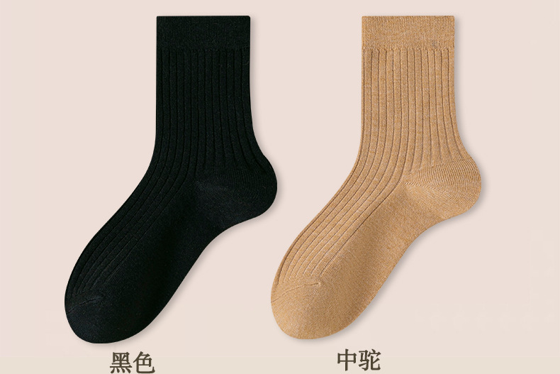 秋冬双针羊绒袜男士保暖细腻柔软中筒袜无骨堆堆袜纯色中筒袜柔软