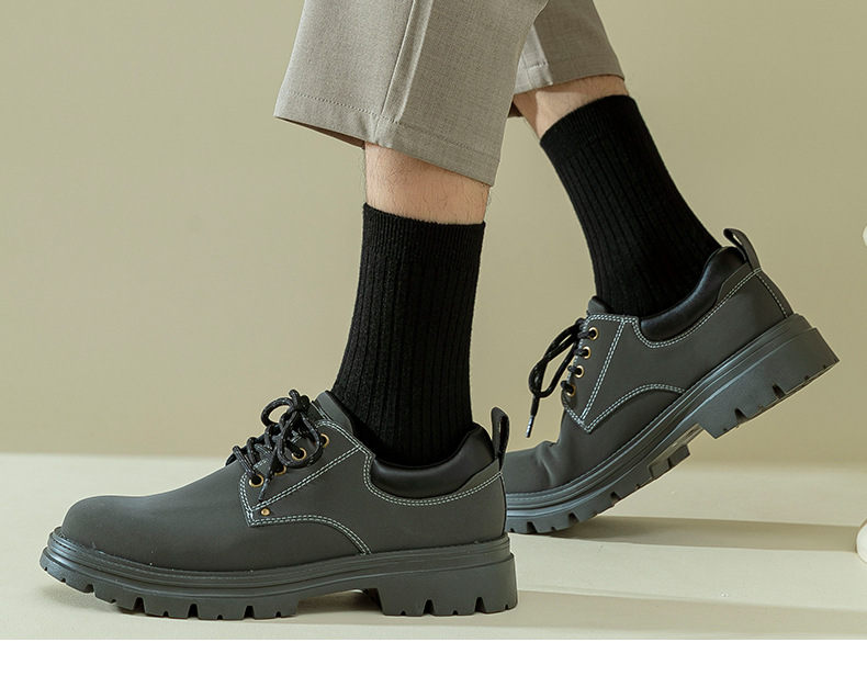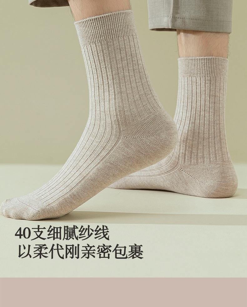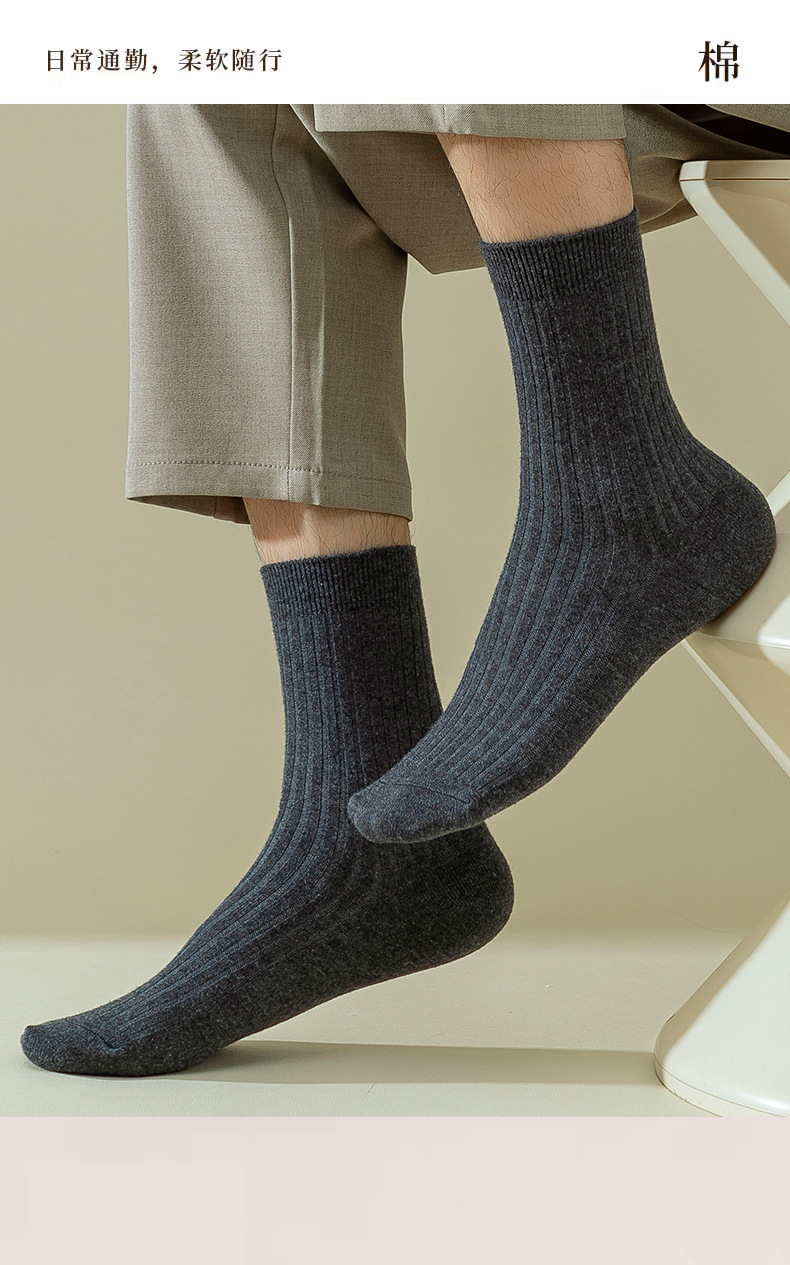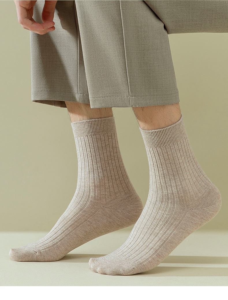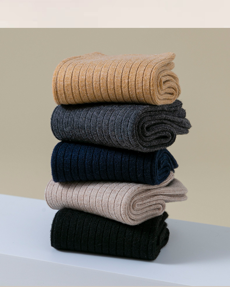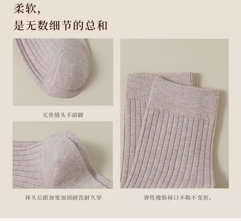 秋冬双针羊绒袜男士保暖细腻柔软中筒袜无骨堆堆袜纯色中筒袜柔软