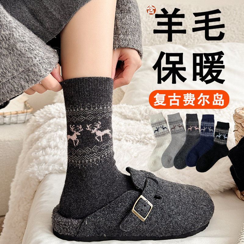 保暖羊绒袜子女秋冬中筒袜加厚堆堆袜无骨休闲百搭袜子爱心袜子