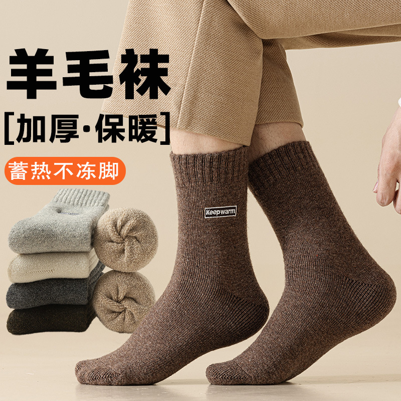 羊毛袜子男中筒袜秋冬季加厚保暖抗寒羊绒地板袜加绒加厚毛圈袜
