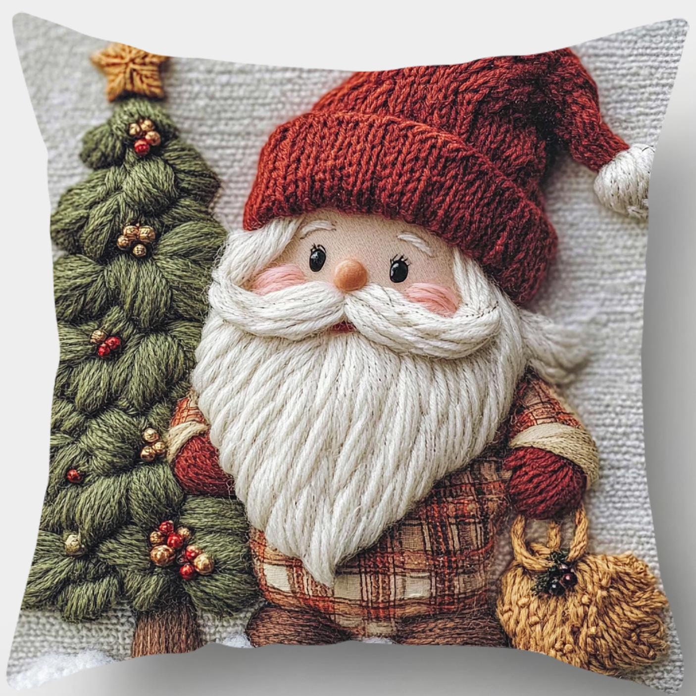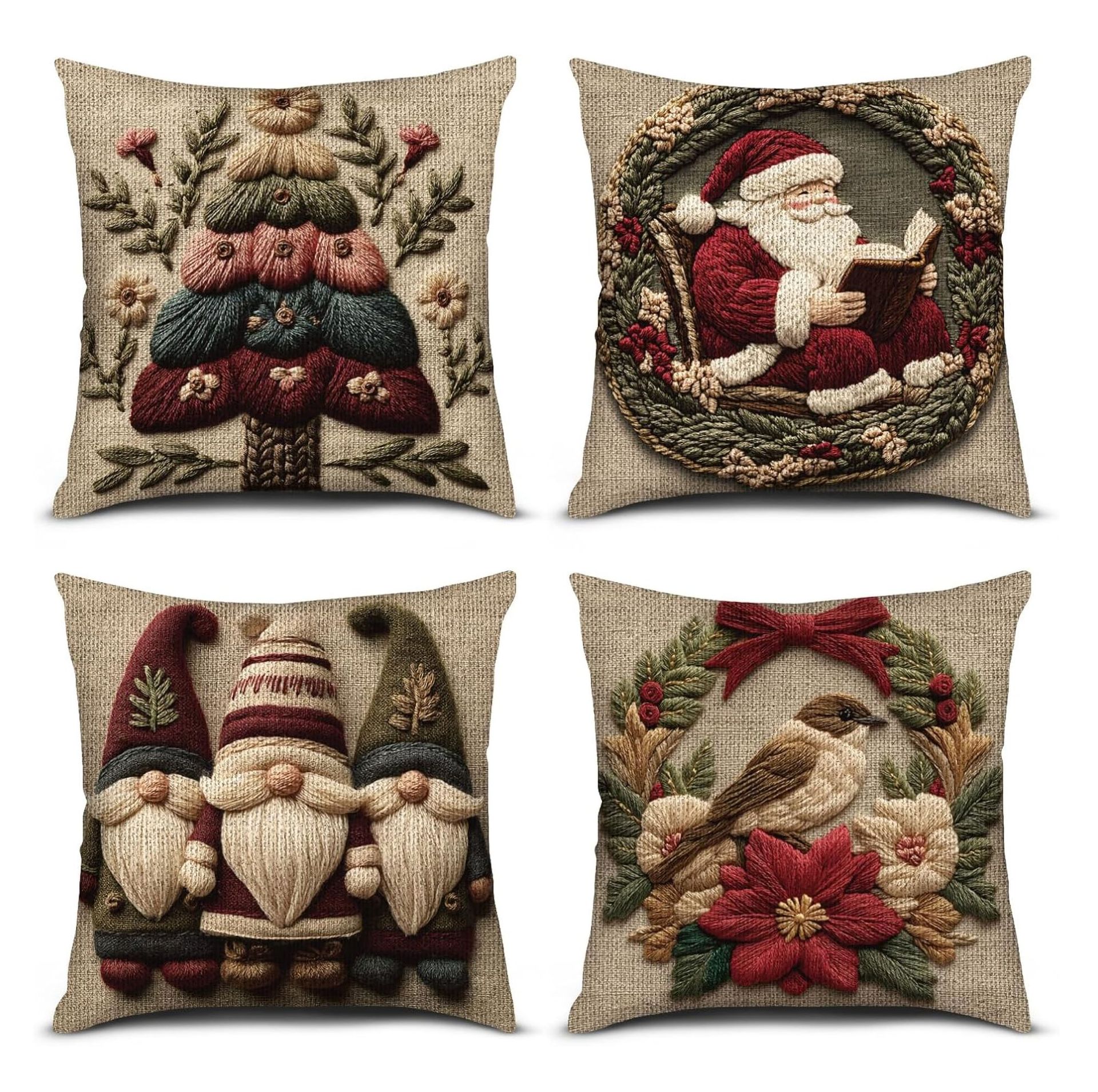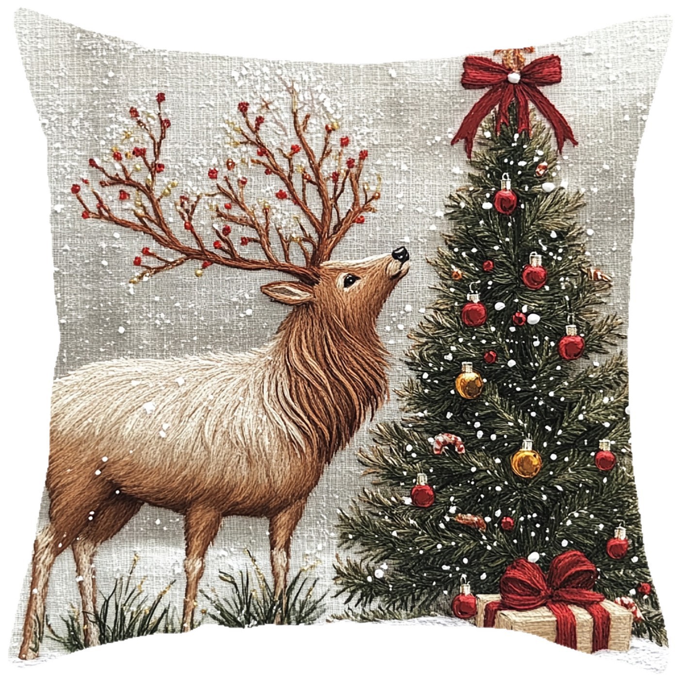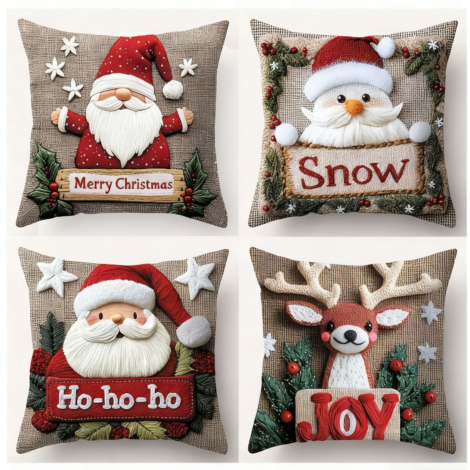 亚马逊圣诞节抱枕套可爱卡通仿刺绣亚麻印花沙发靠枕套节日装饰