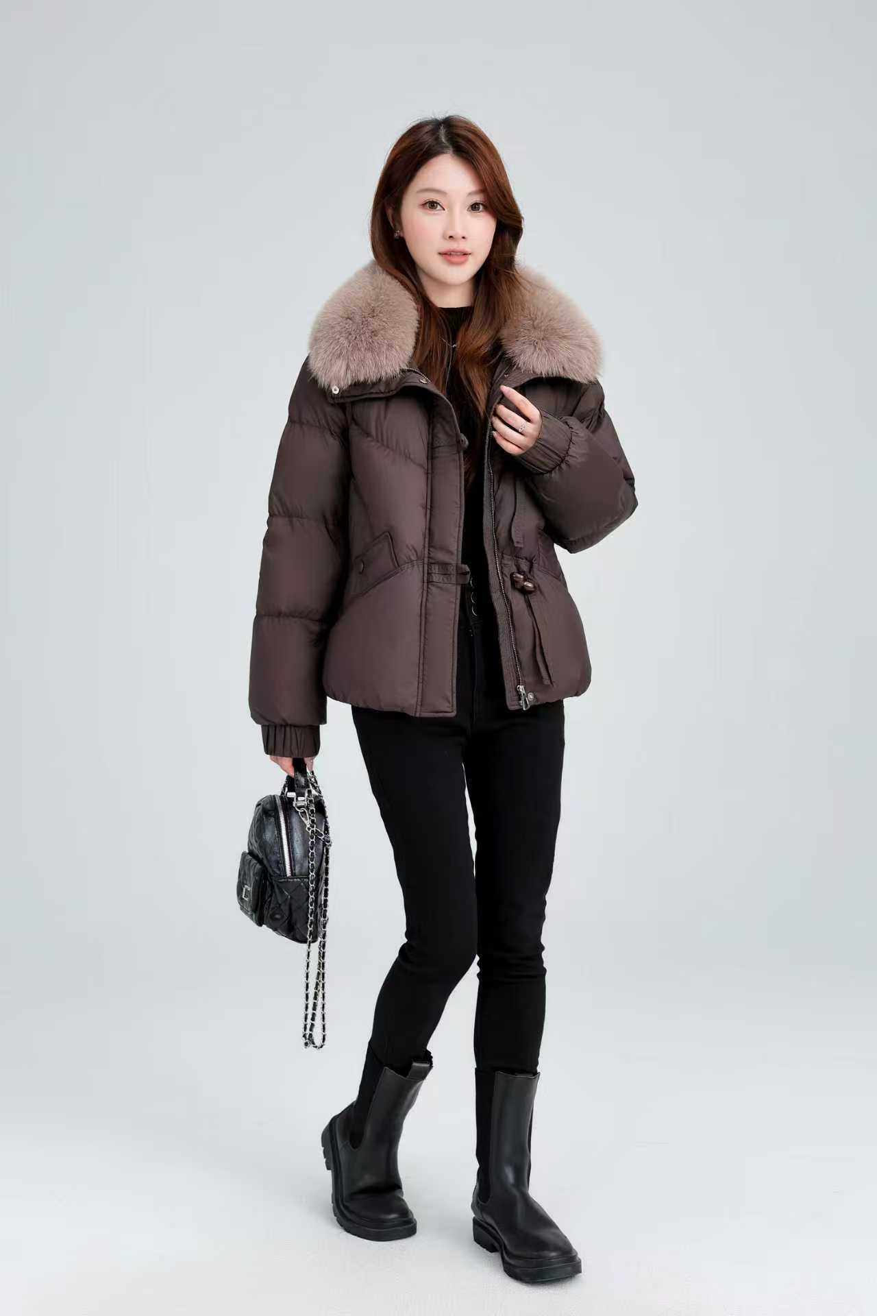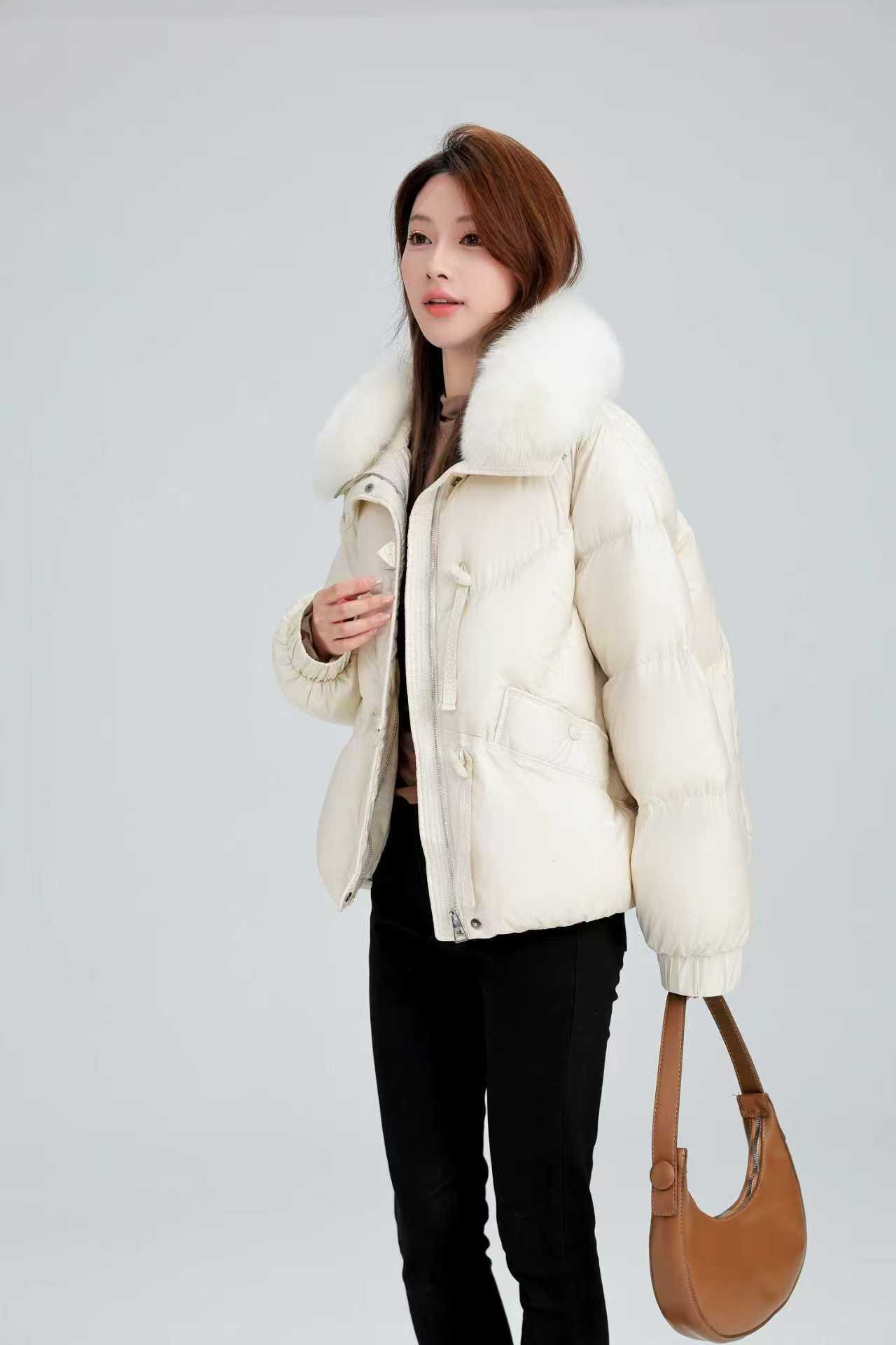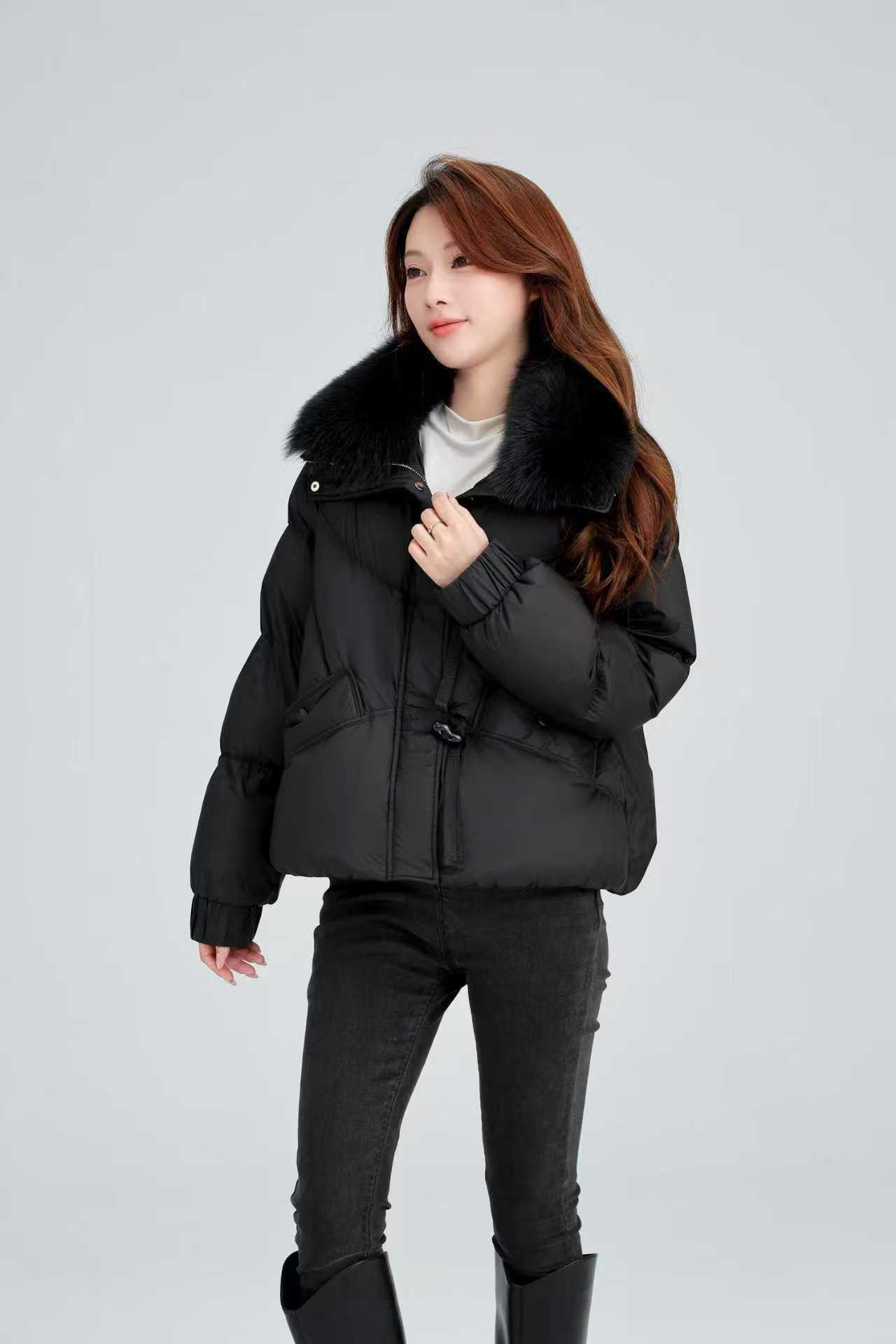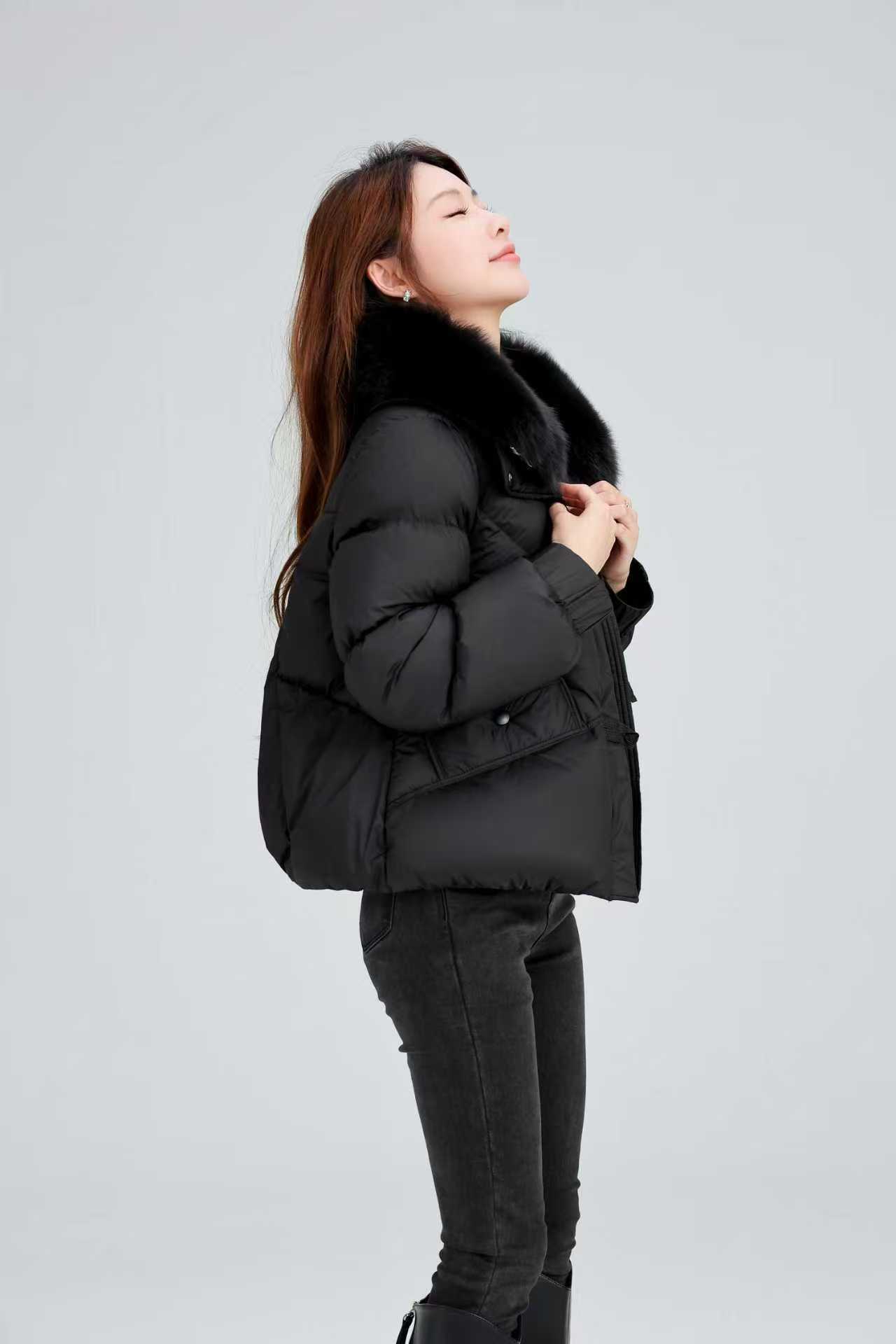 2025冬新款狐狸大毛领羽绒服女短款90白鸭绒气质加厚外套气质通勤