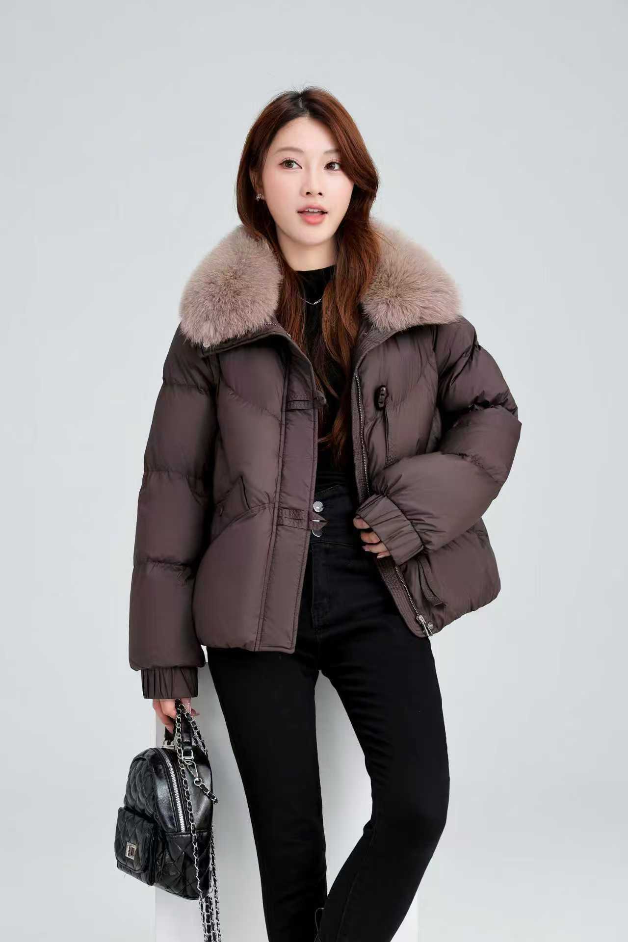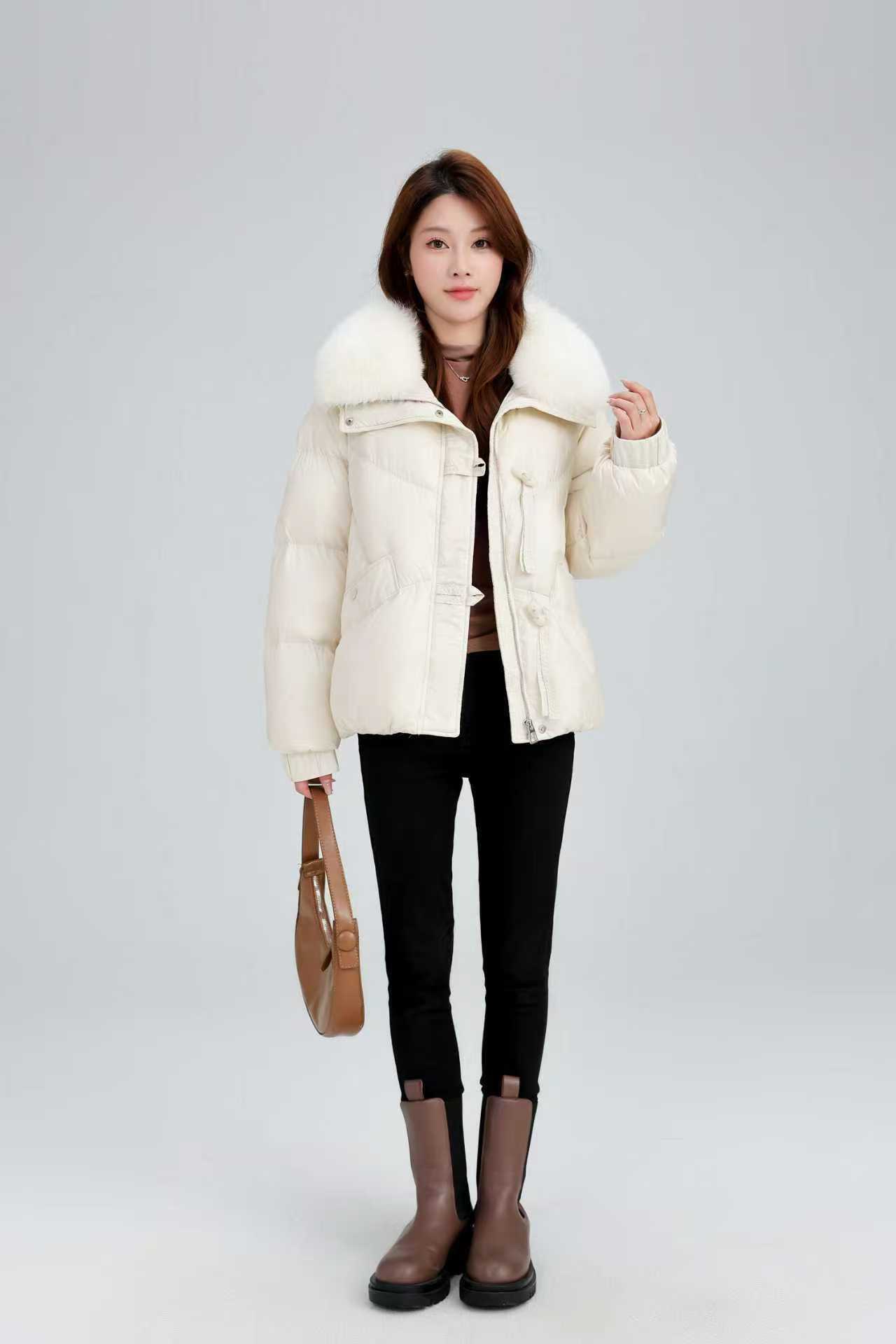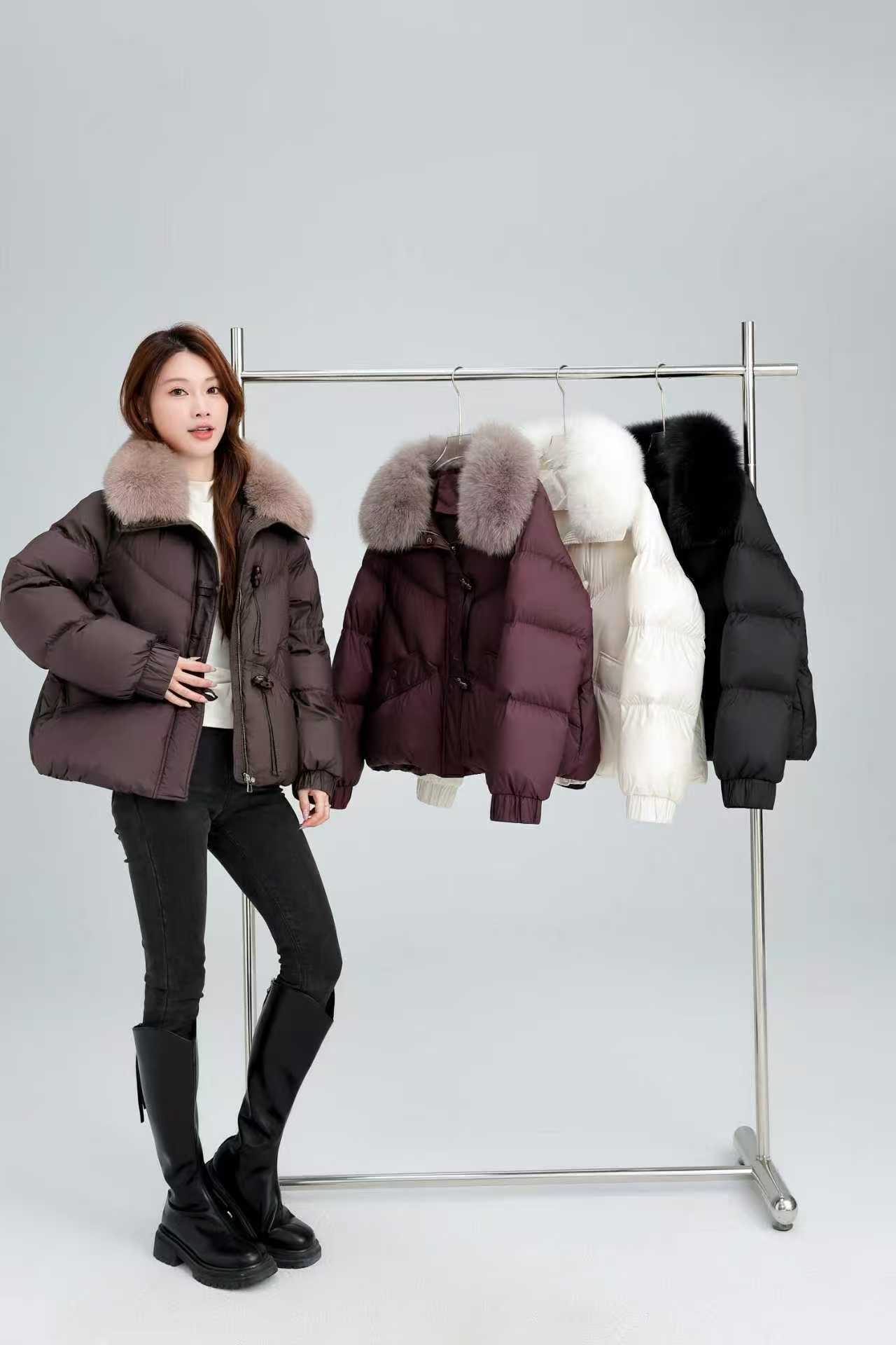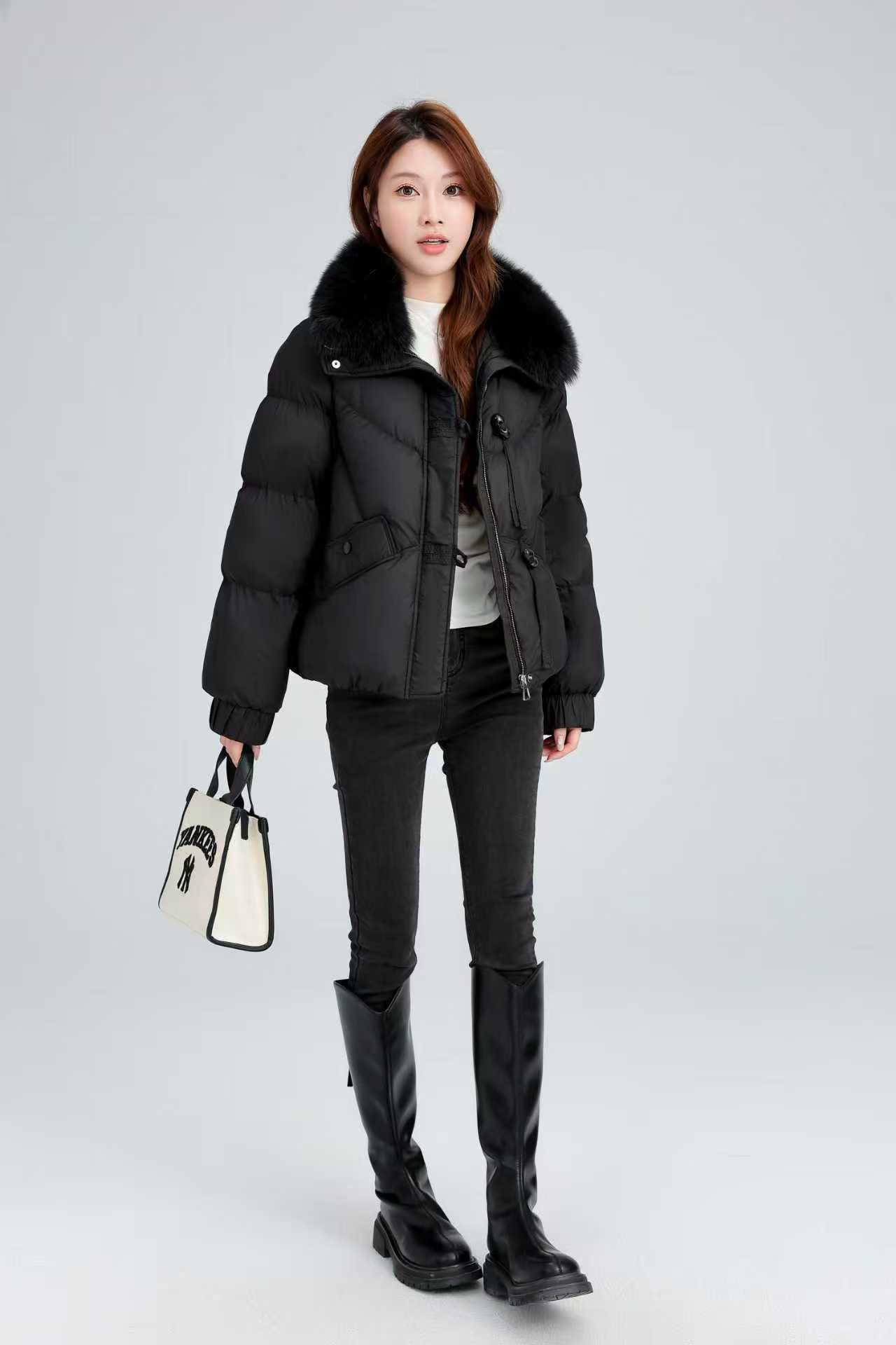 2025冬新款狐狸大毛领羽绒服女短款90白鸭绒气质加厚外套气质通勤