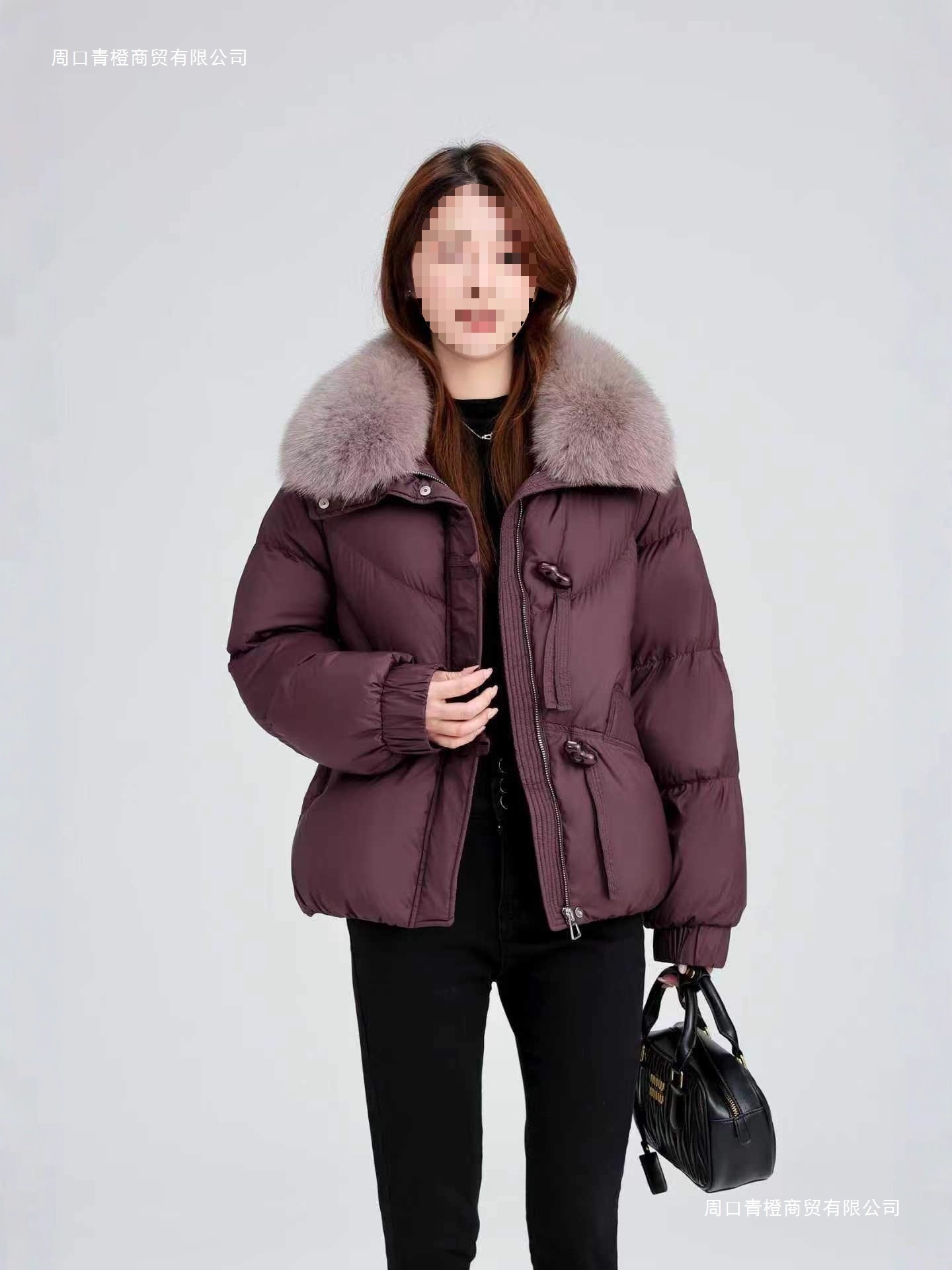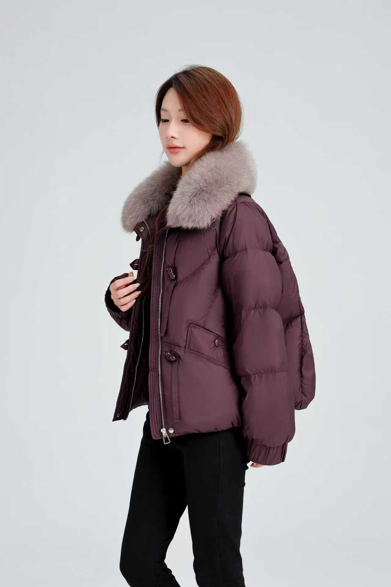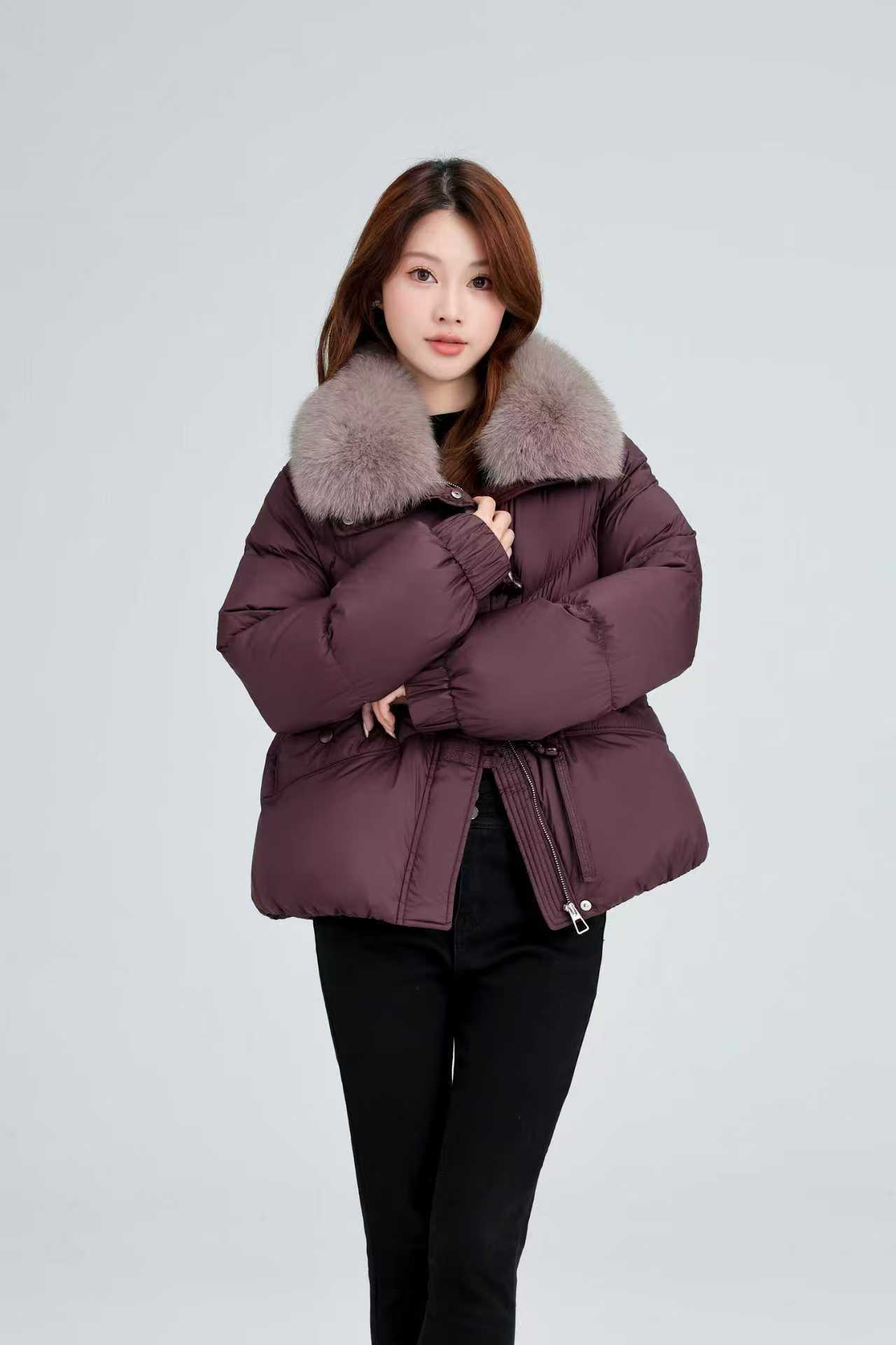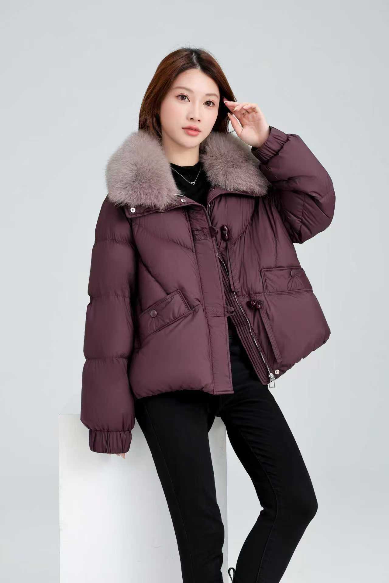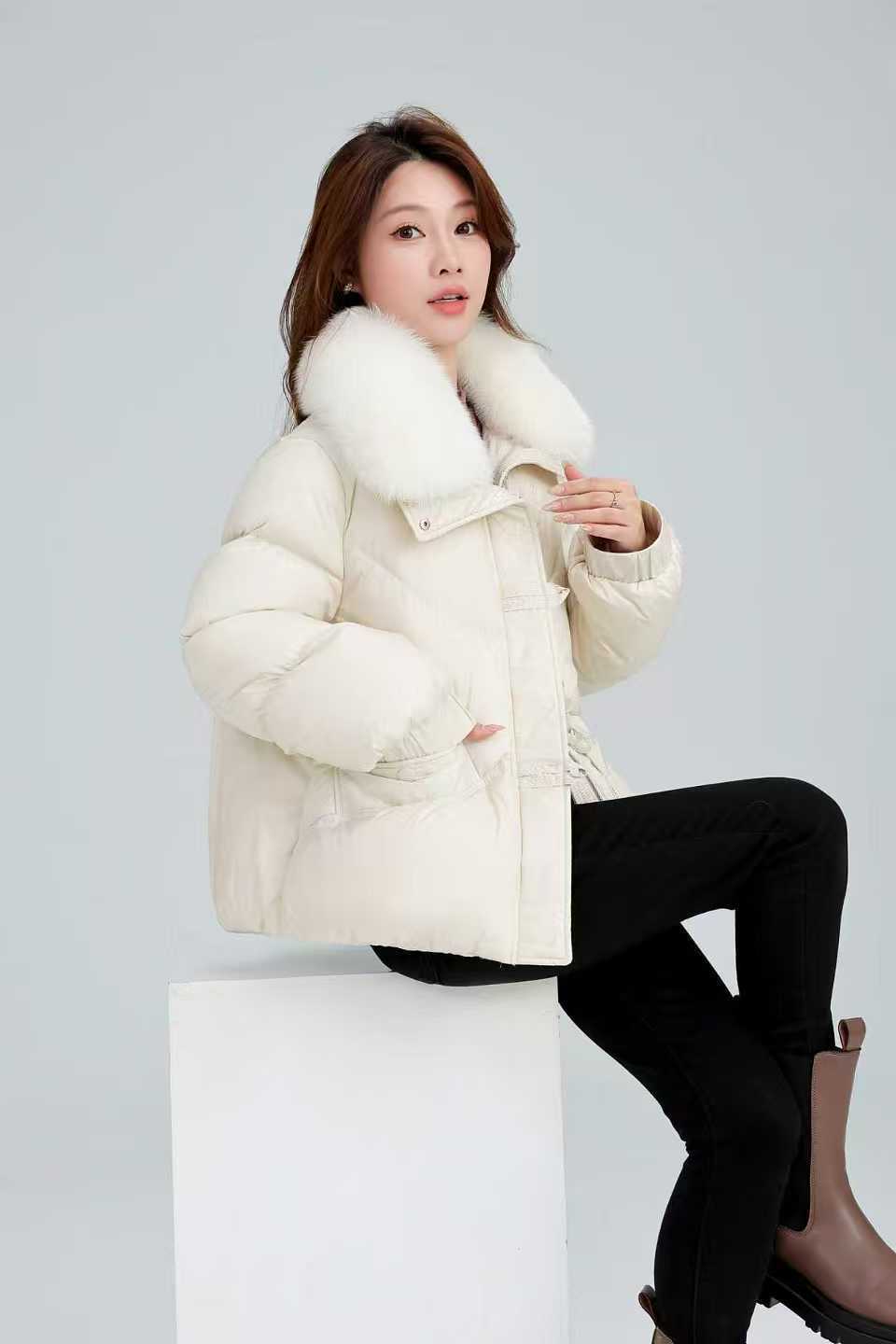 2025冬新款狐狸大毛领羽绒服女短款90白鸭绒气质加厚外套气质通勤