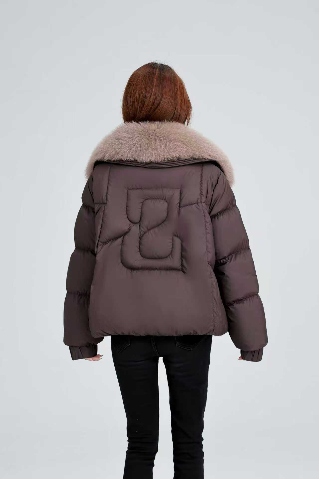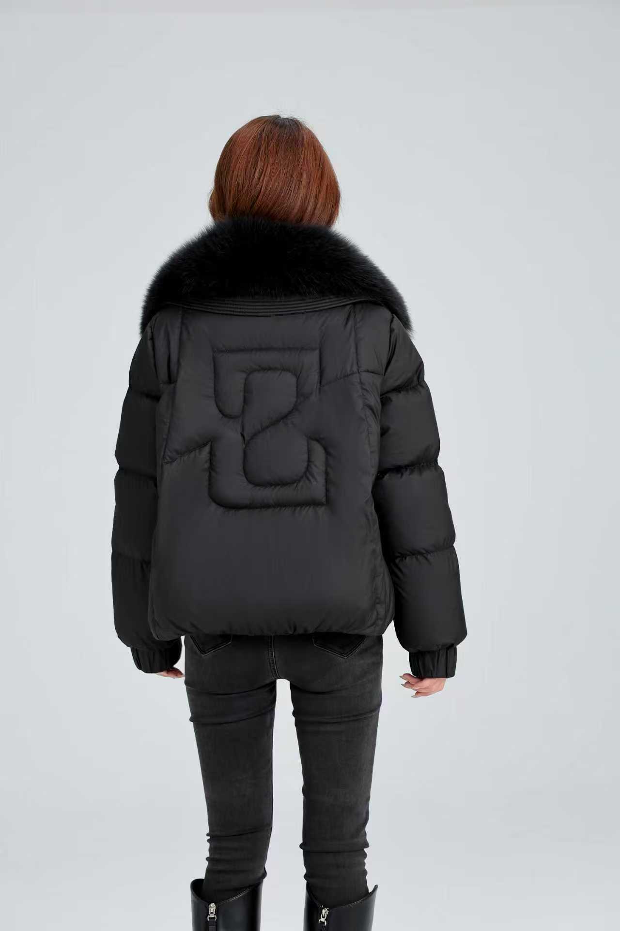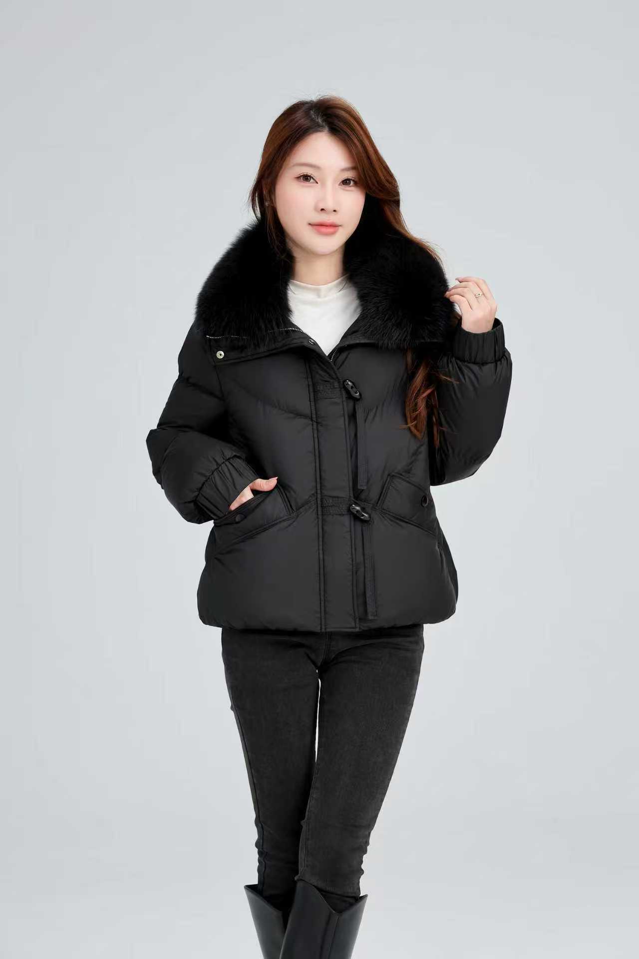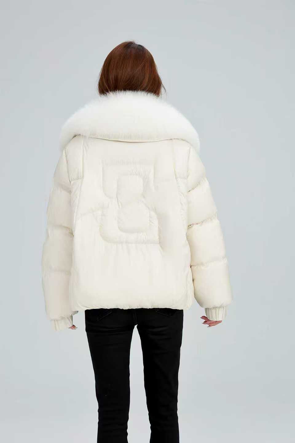 2025冬新款狐狸大毛领羽绒服女短款90白鸭绒气质加厚外套气质通勤
