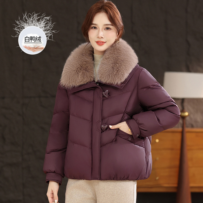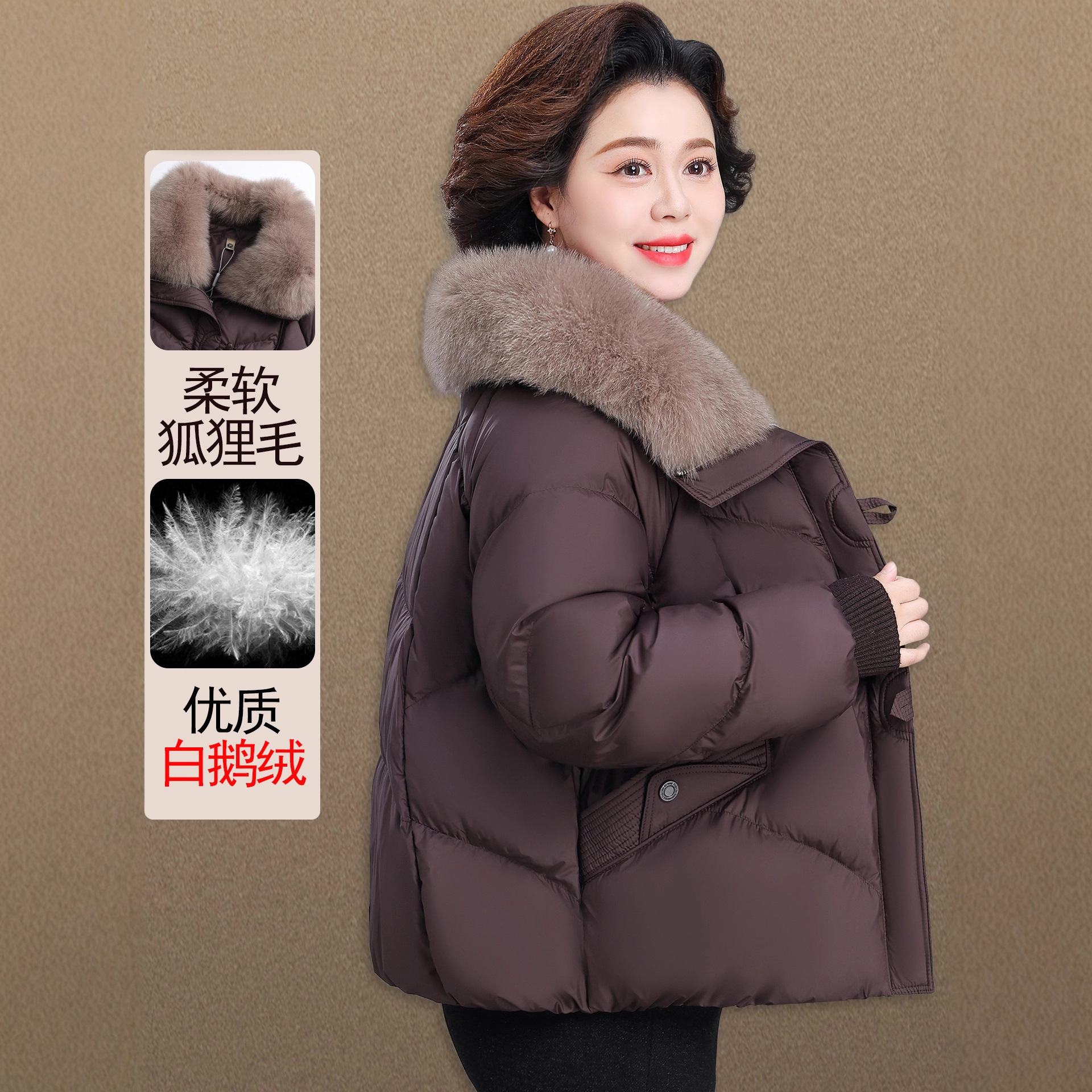 2025新款妈妈冬装鹅绒羽绒服洋气中老年女冬季短款大毛领保暖外套