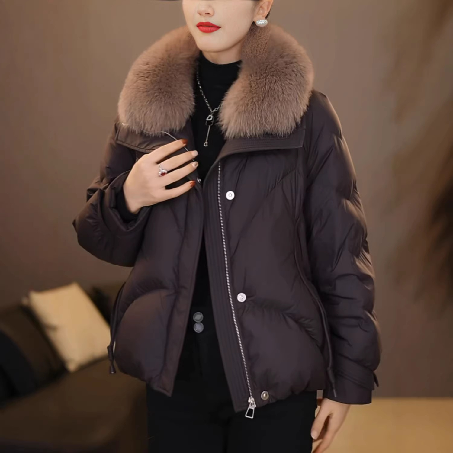 2025冬新款洋气狐狸大毛领羽绒服女短款90白鸭绒气质加厚外套防寒
