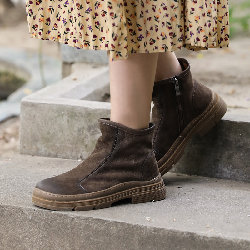 bodiess铂帝思头层牛皮马丁靴女圆头侧拉链中筒短靴头层牛皮女鞋