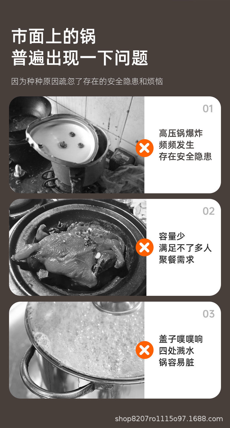 新款麦饭石微压锅家用压力锅大容量多功能不粘锅炖煮煲汤锅料理锅