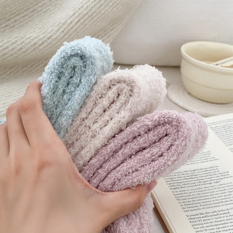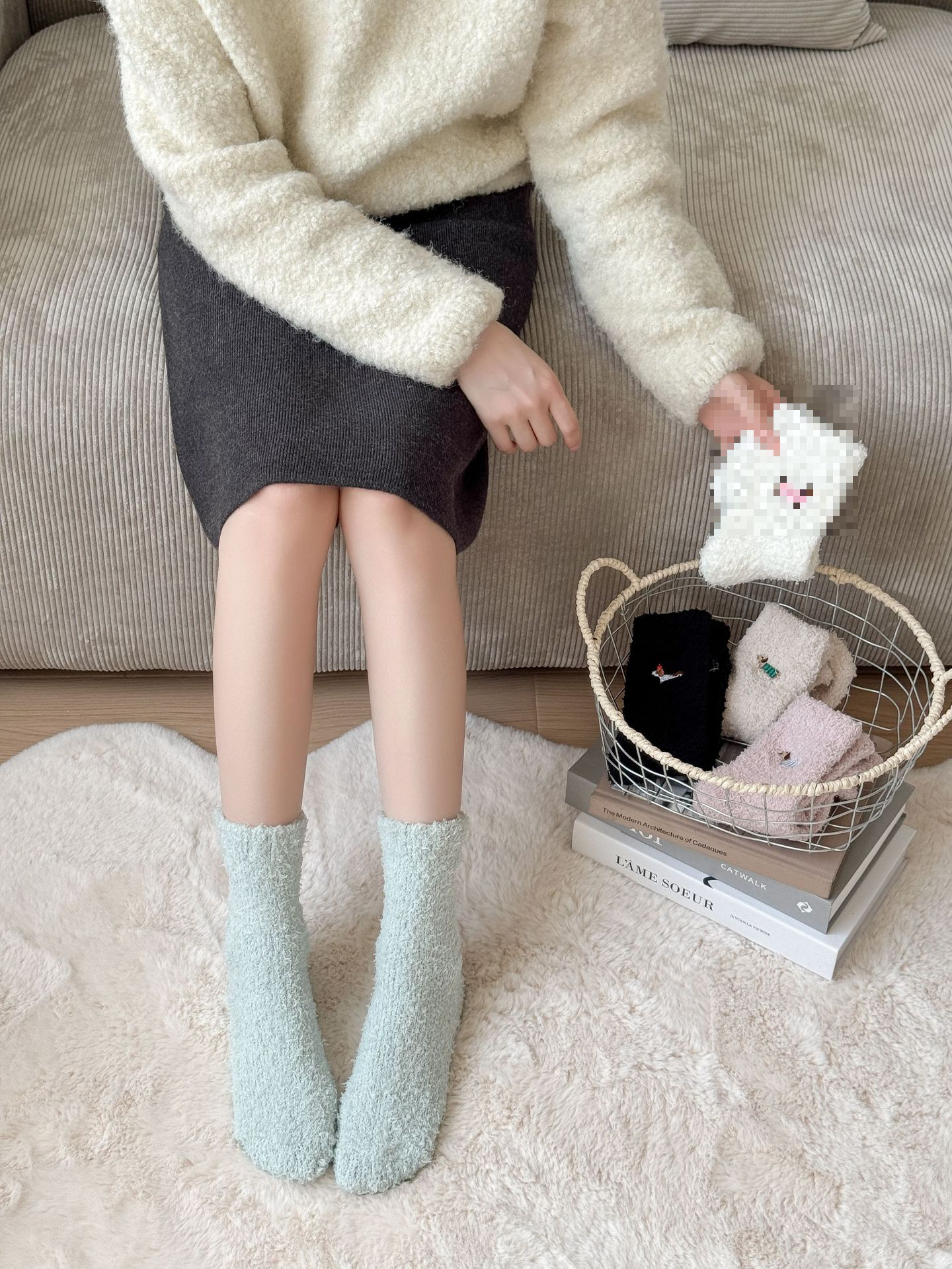 珊瑚绒小腿袜秋冬加绒加厚保暖布标高筒袜毛毛绒居家地板睡眠袜