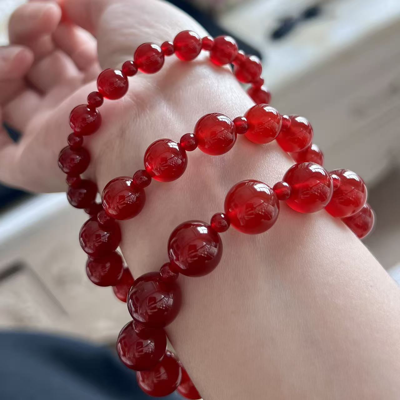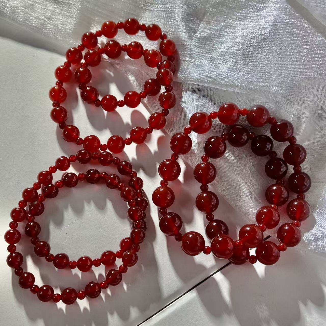 许我耀眼许研赵露丝同款10MM天然冰透红玛瑙双圈手串高级感