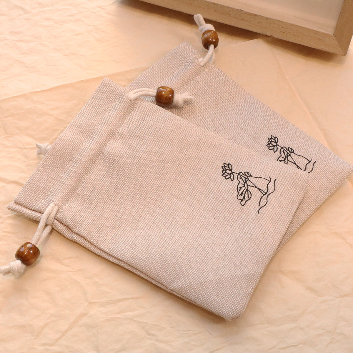 10*14mm文遊び収納袋ハスの花古風携帯綿麻布袋引き紐荷袋空袋