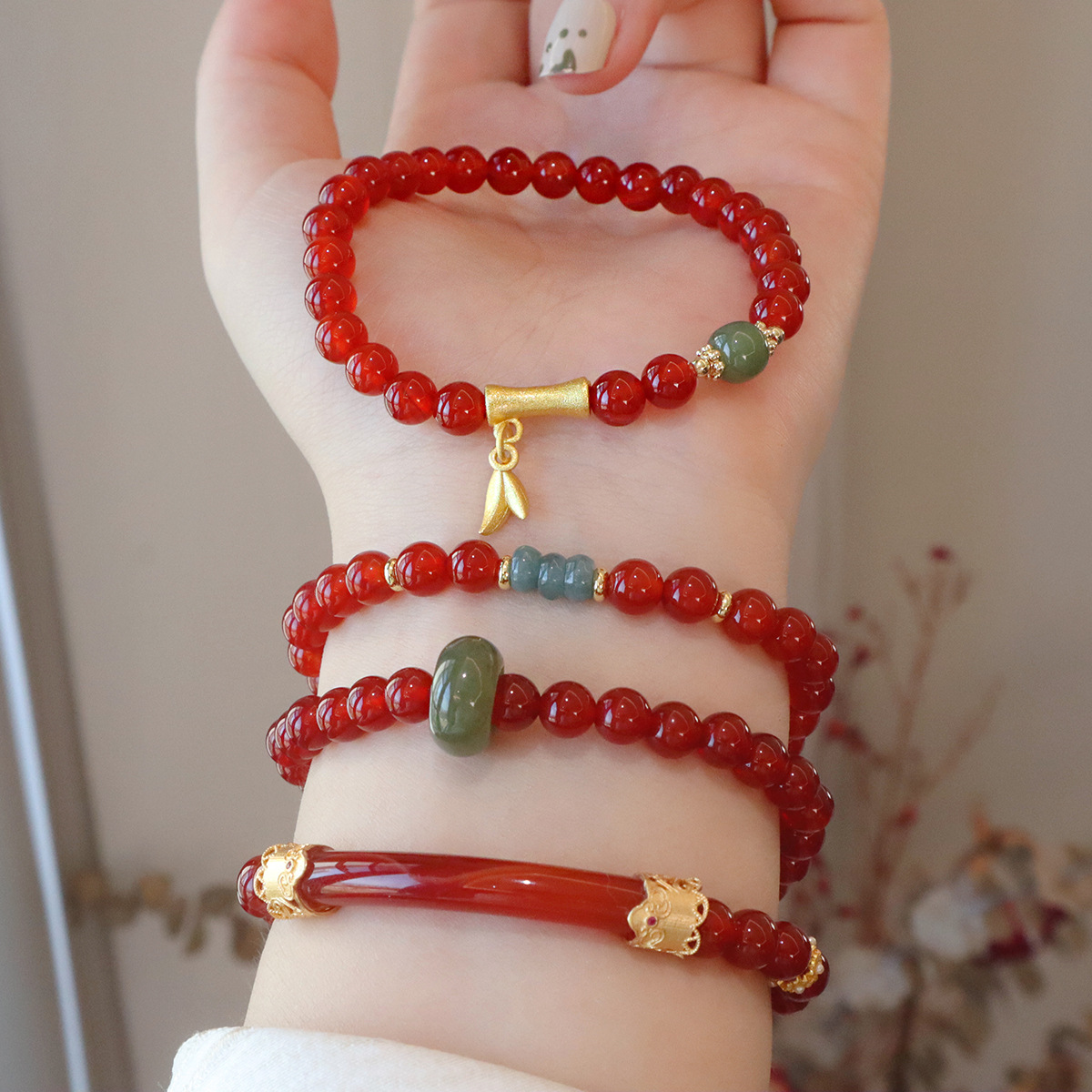 大衆は簡単です。天然の紅瑪瑙は玉のブレスレットを運びます。