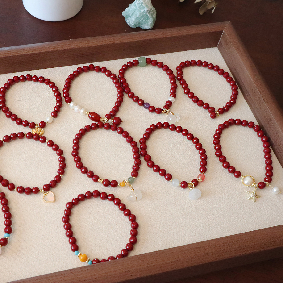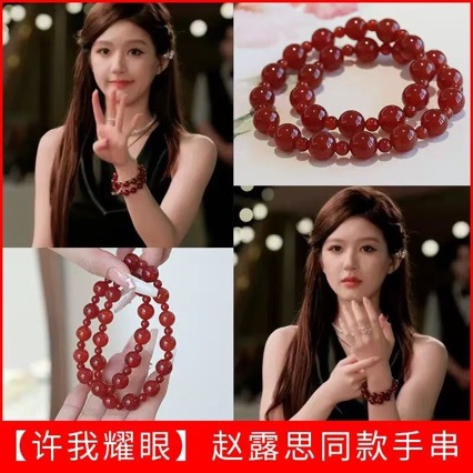 赵露思同款红玛瑙手链 许我耀眼 双圈红玛瑙手串水晶散珠批发